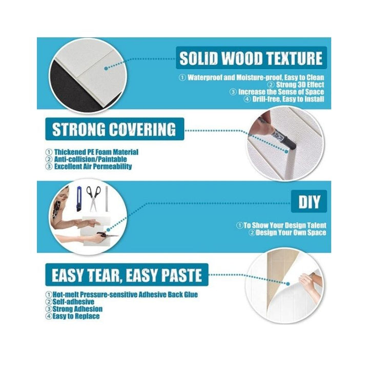 No need for filling nail holes, chips, cracks, smoothing the surface, or sealing with a primer - use the panels to create the right atmosphere, just peel and stick.