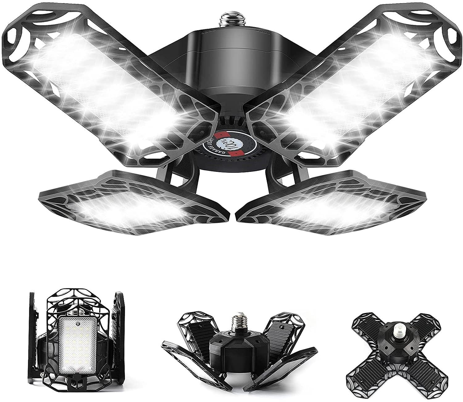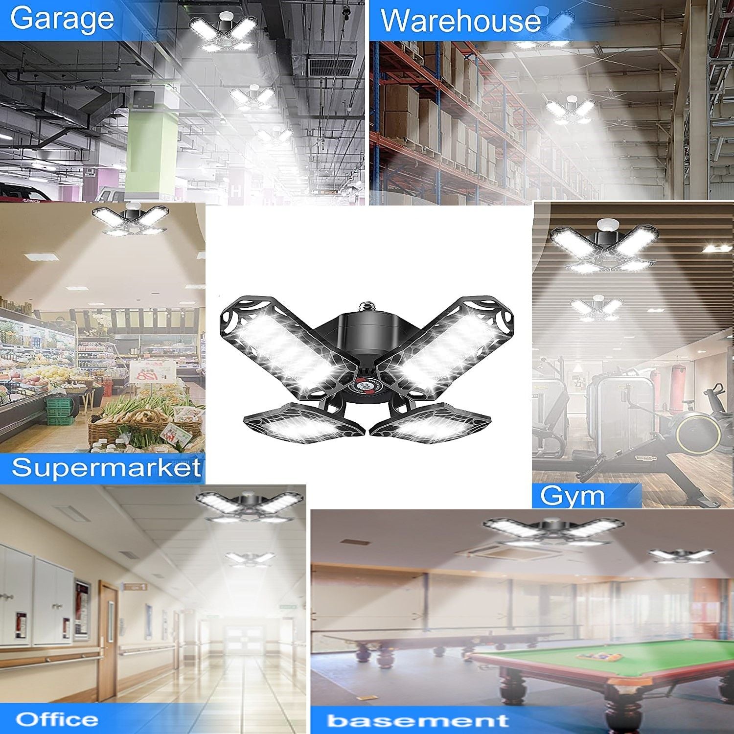 - 360° Illumination and Wide Application: This garage light is deformable, which means you can move the panel up to 90° or move down from 0° to 25°. It ensures 360° area can be fully illuminated, and different environment requirements can be met. Therefore, it can cover every corner of an area that cannot be covered by a regular light bulb.
