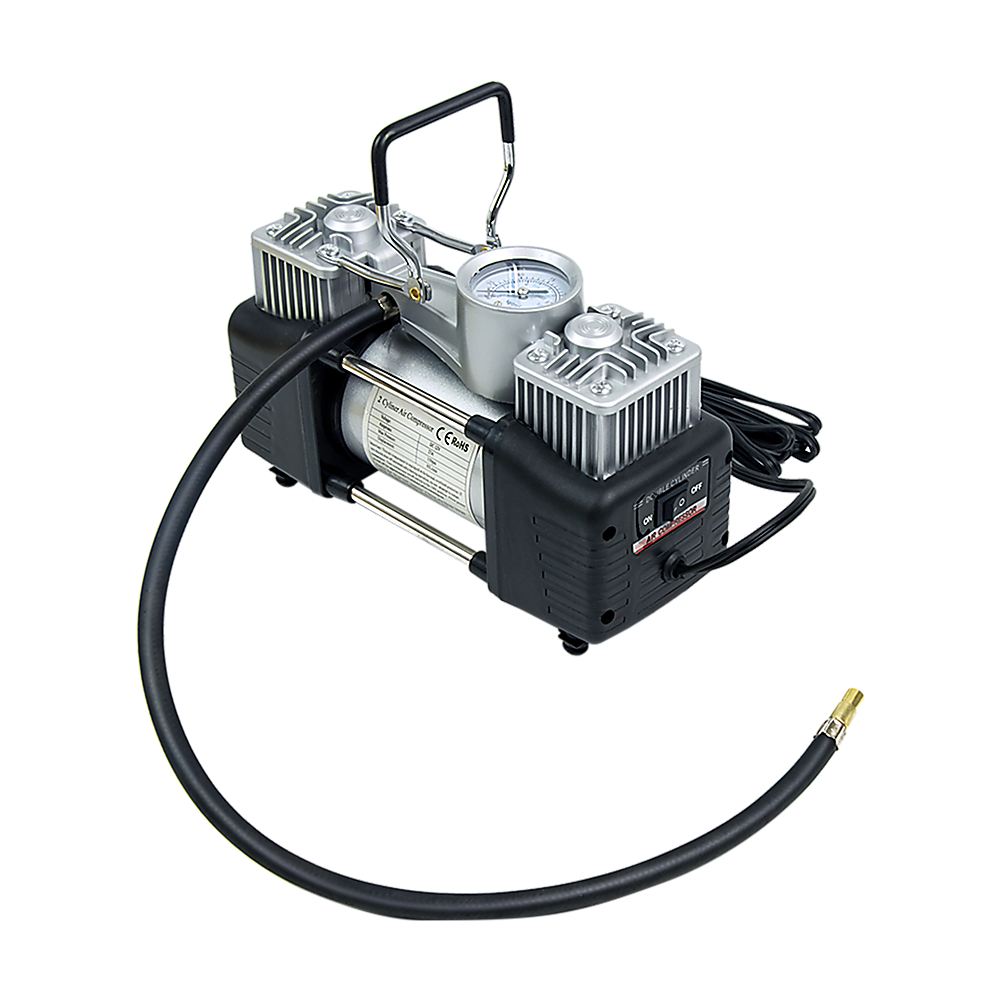 Its working capacity of 150 PSI fills your tyre at a rate of 85 litres per minute. With its dual-cylinder power, it can easily accommodate tyres on even larger vehicles, such as 4x4s. A bleed valve protects the compressor by releasing the pressure built up inside the tank from air or other gases. Keep it in your car's boot for easy access when you travel. It comes with its own carry bag, so you can take it along with you wherever you go. Its top-quality construction ensures that it will last for years to come. Don't wait to protect you and your family from the hassle and danger of a flat tyre. Order your portable air compressor today!