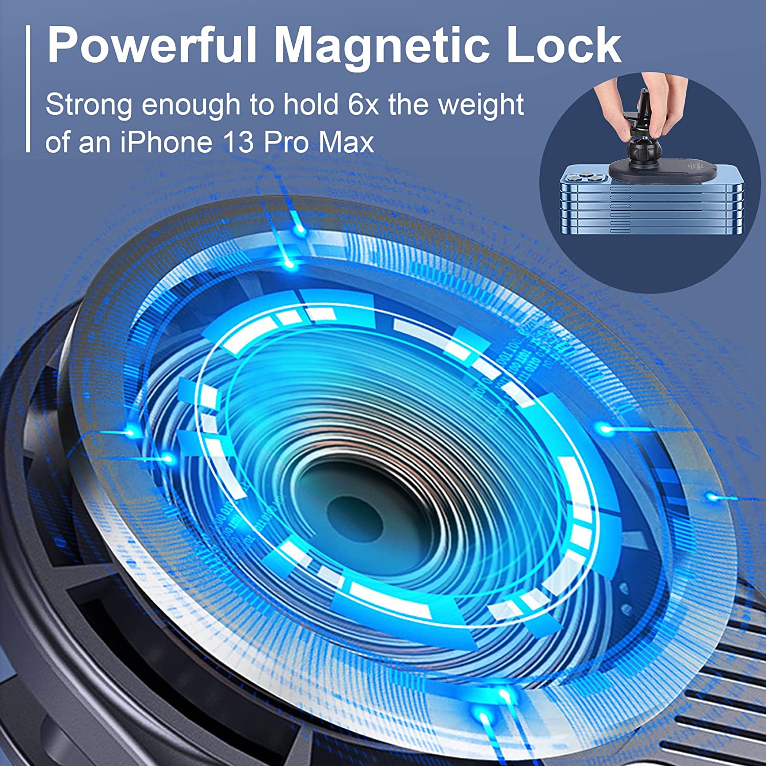 - Powerful Magnetic Wireless Car Charger: The magnetic wireless car charger uses magnetic force to hold your phone. You can easily pick up or put down the phone with one hand. The Powerful magnetic lock secures your phone even through the roughest terrain. No need to worry about sudden braking, rapid acceleration and bumps.
