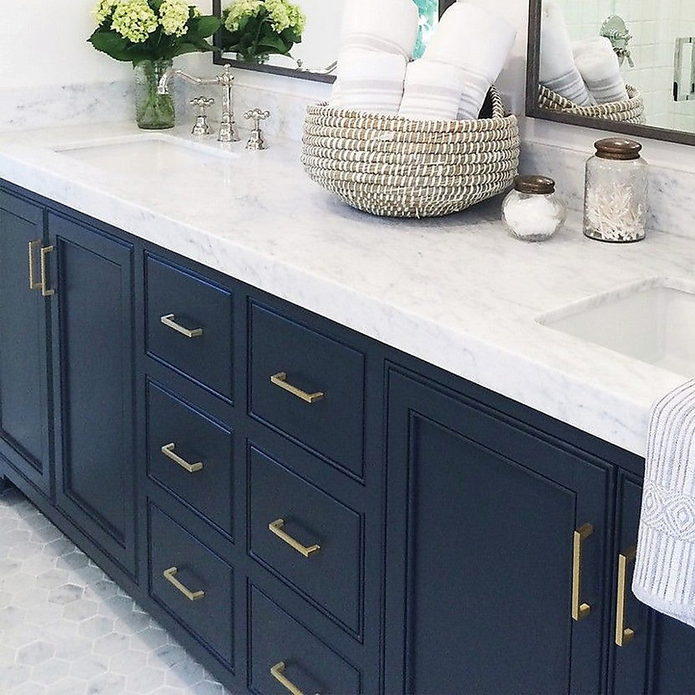 Looking for a way to add visual pop to your kitchen or bathroom cabinetry? With these contemporary brushed brass drawer pulls by Randy & Travis Machinery, your kitchen or bath will look sparkling new without the expense of a complete renovation. Add a designer touch with their classic rectangular profile and subtle gold tones.