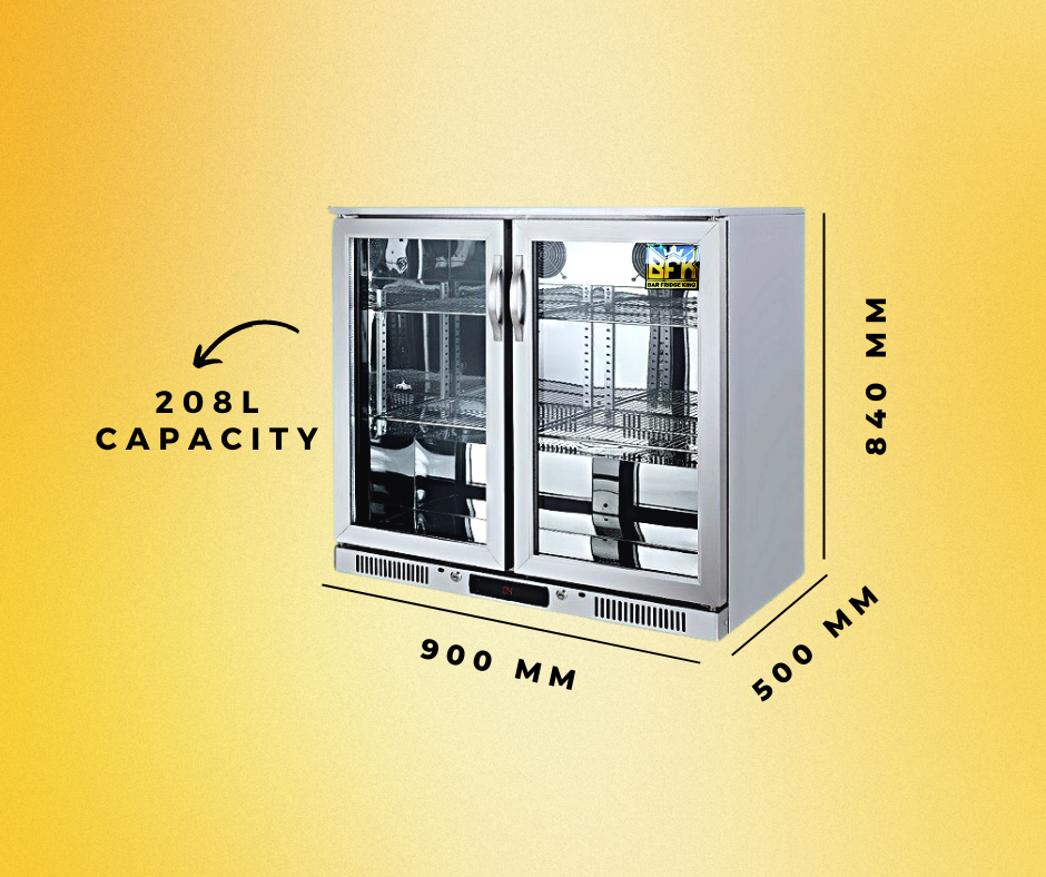 Model: Bar Fridge King 208L Double Door Bar Fridge Stainless Steel