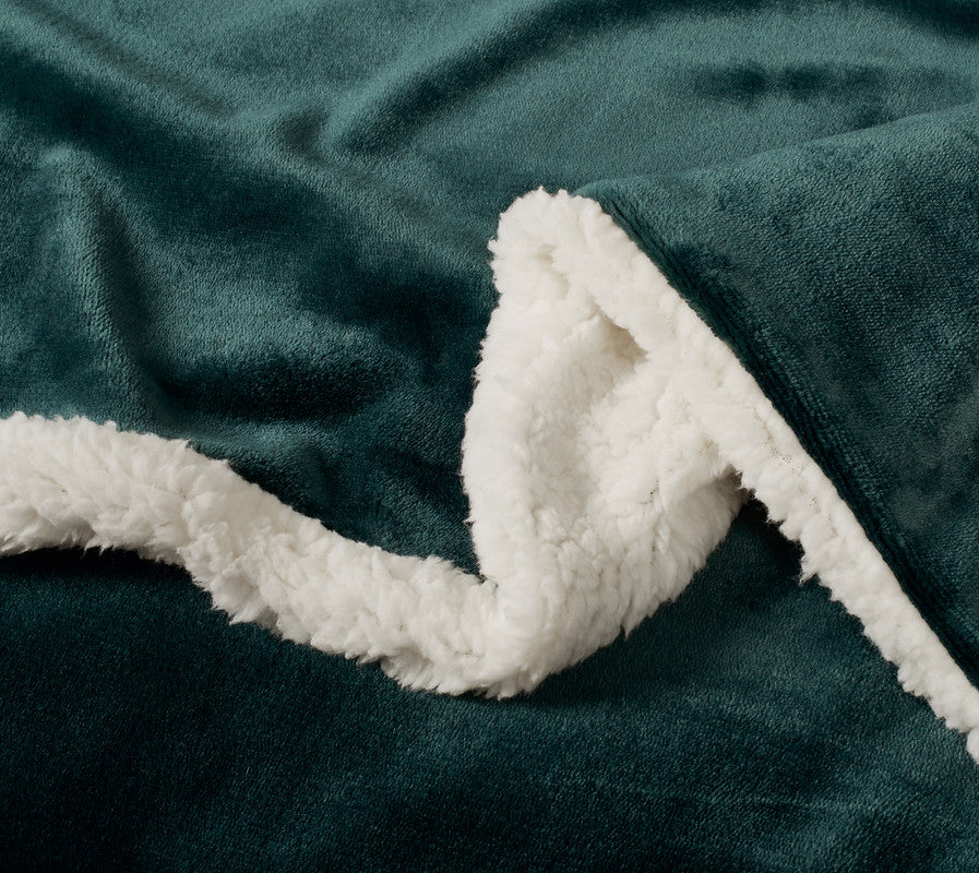 2 in 1 Teddy Sherpa Quilt Cover Set and Blanket queen size emerald green