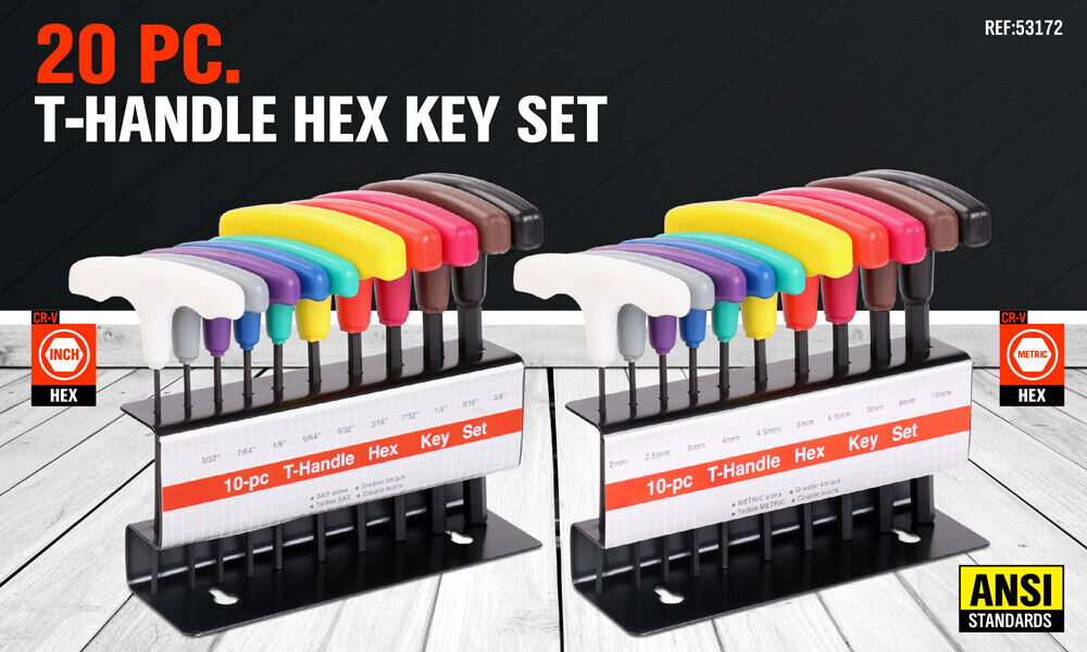 Reviews 20Pc T-Handle Hex Key Set Allen Wrench Metric & Imperial / SAE Colour With Stand 0 out of 5 stars This product has no reviews yet Write a review Write a review