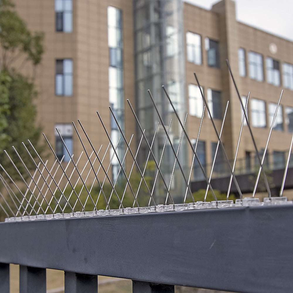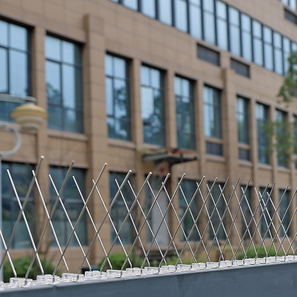 These slim, flexible rods sit in a base at an angle. They're not sharp, but they keep the birds' feet from gaining a foothold on your building because the spikes are too flexible for a bird to achieve a comfortably flat resting place. They're easy to clean and maintain. Simply pull out any debris, such as leaves, that accumulates as the weather changes. And, they're easy to install, making them cost-effective since you'll never need to call a professional installer. They're crafted from durable stainless steel on a tough polypropylene base, so they'll last for years to come. Don't wait for the birds to arrive this spring. Get prepared now with a set of these spikes!