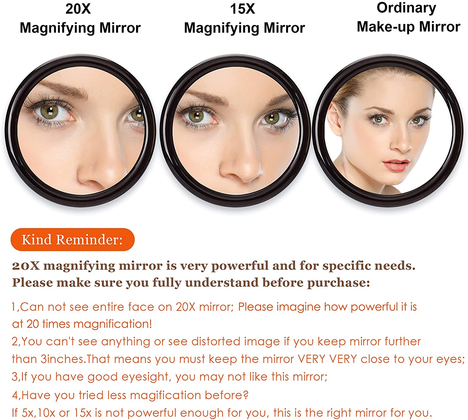 - Magnifying mirror with 20x (the maximum magnification on the market) with guaranteed quality.