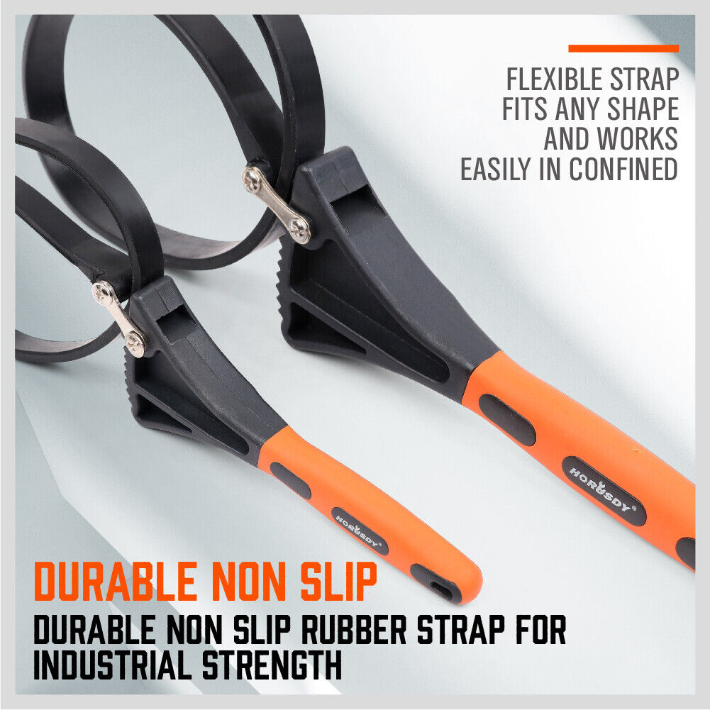 2Pc Adjustable Wrench Set Rubber Belt Strap Spanner Multi-Purpose Jar Cap Opener