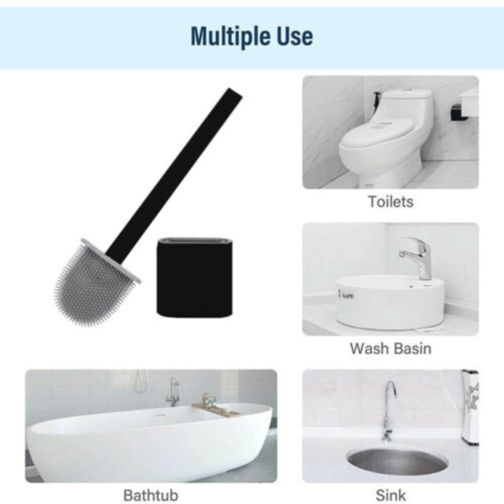 【New Design】: A revolutionary toilet brush with a flexible D-shaped silicone head that reaches all areas, even under the rim.