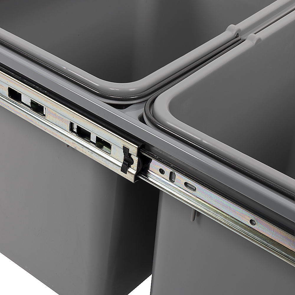 If you recycle (and who doesn't, these days?), you need this dual pull-out kitchen rubbish bin from Randy & Travis Machinery. It fits right under your under-sink cabinet, keeping your rubbish disposal system out of sight. Crafted from durable, heavy-duty plastic and steel slide rails, this waste disposal system can stand up under years of heavy use. Simply close the removable lid after you dispose of your kitchen rubbish to prevent odour build-up. With a full capacity of 30 litres, it can easily hold all your daily kitchen rubbish, avoiding extra trips outside.