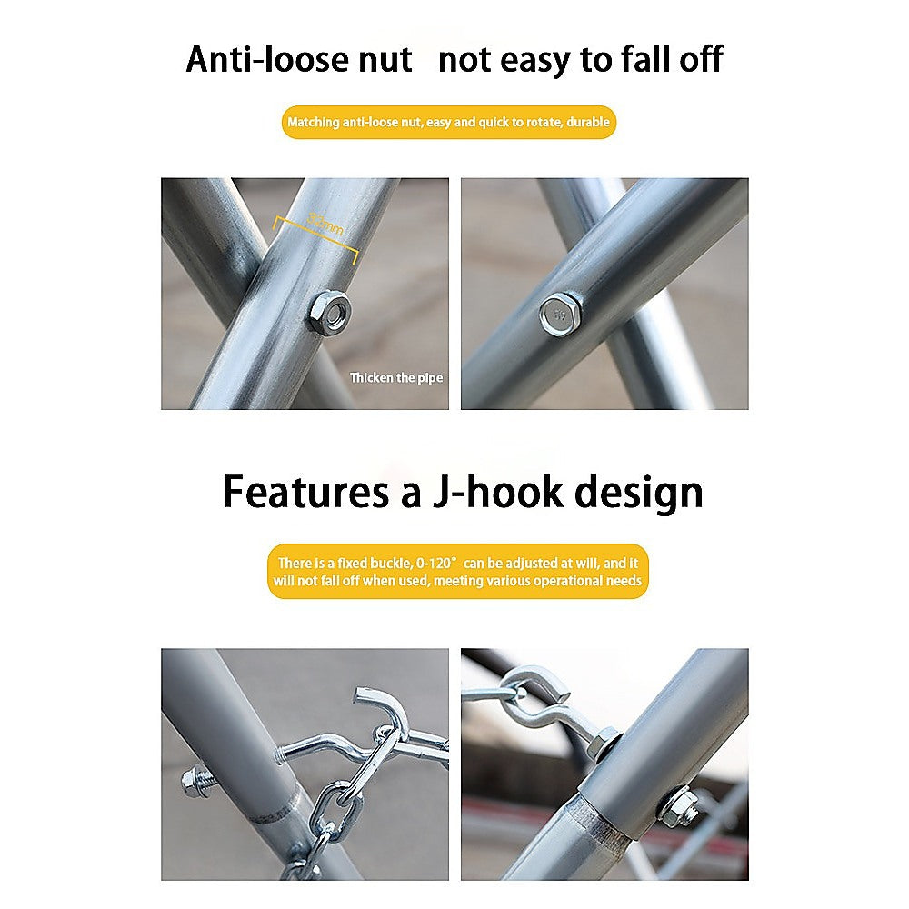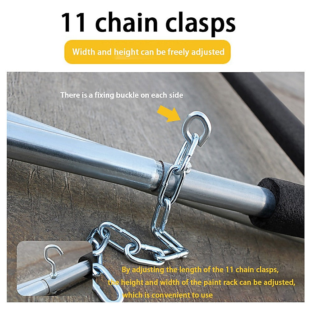 Equipped with a heavy gauge chain and 6 connectors, you can easily adjust the height to your desired level. The legs are designed with non-skid tips, ensuring stability and preventing slipping.