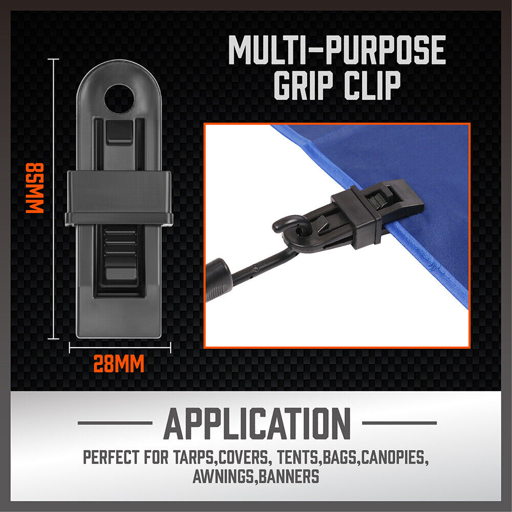 - Crocodile Mouth Tarp Clips: Securely clamp and release tarpaulins of various thicknesses for added convenience.