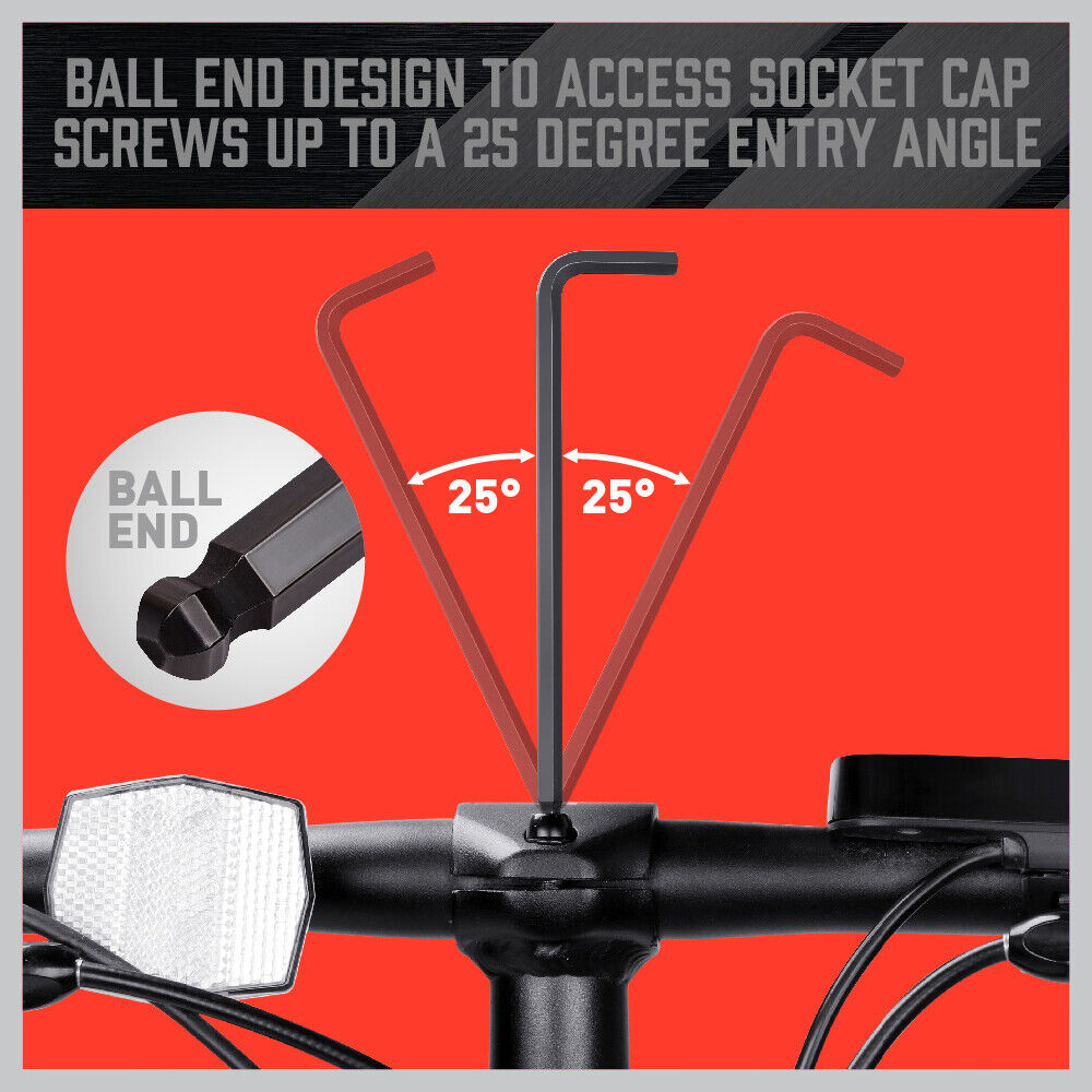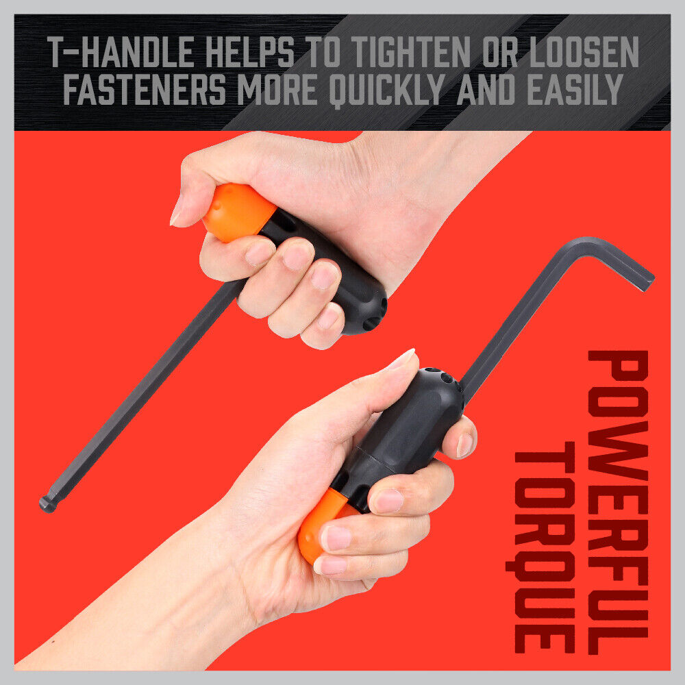 - Versatile and efficient: T-handle design for quick tightening or loosening, ball hex ends for a 25-degree entry angle, and temper-proof Torx wrenches included.