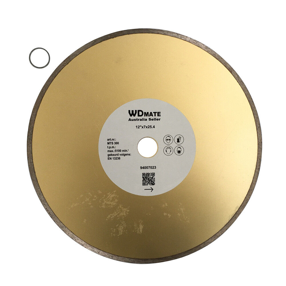 12' 300mm.Wet diamond cutting wheel.Continuous saw blade disc 9400.Main features:.Diameter(mm):300mm.Outer inch:12 '.Segmnet width(mm):2.9.Arbor size(mm):25.4 & washer 25.4/22.23mm.Segment height(mm):5.Max :5100min.Type:continuous.Production process:cold.Applications:block,concrete,pavers,brick... Read more