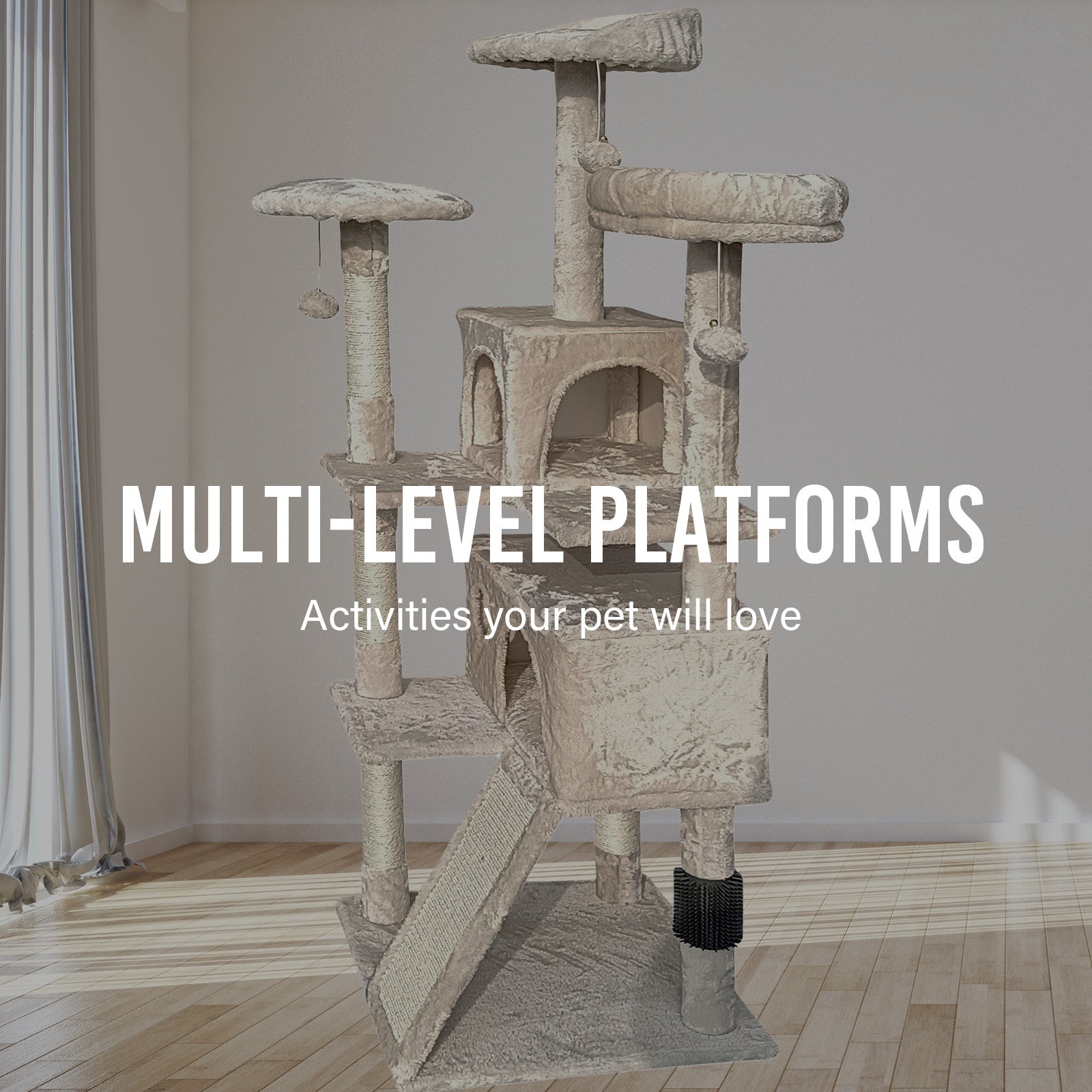 4Paws Cat Tree Scratching Post House Furniture Bed Luxury Plush Play 152cm - Beige