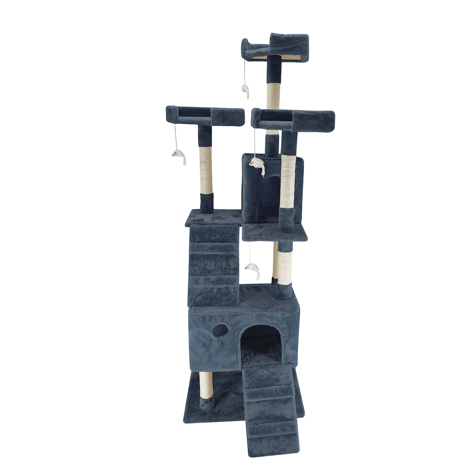 Curious cats will love to explore the multilevel and multi-zoned design that provides various napping positions, hiding spots, and a place to divert their scratching instincts.