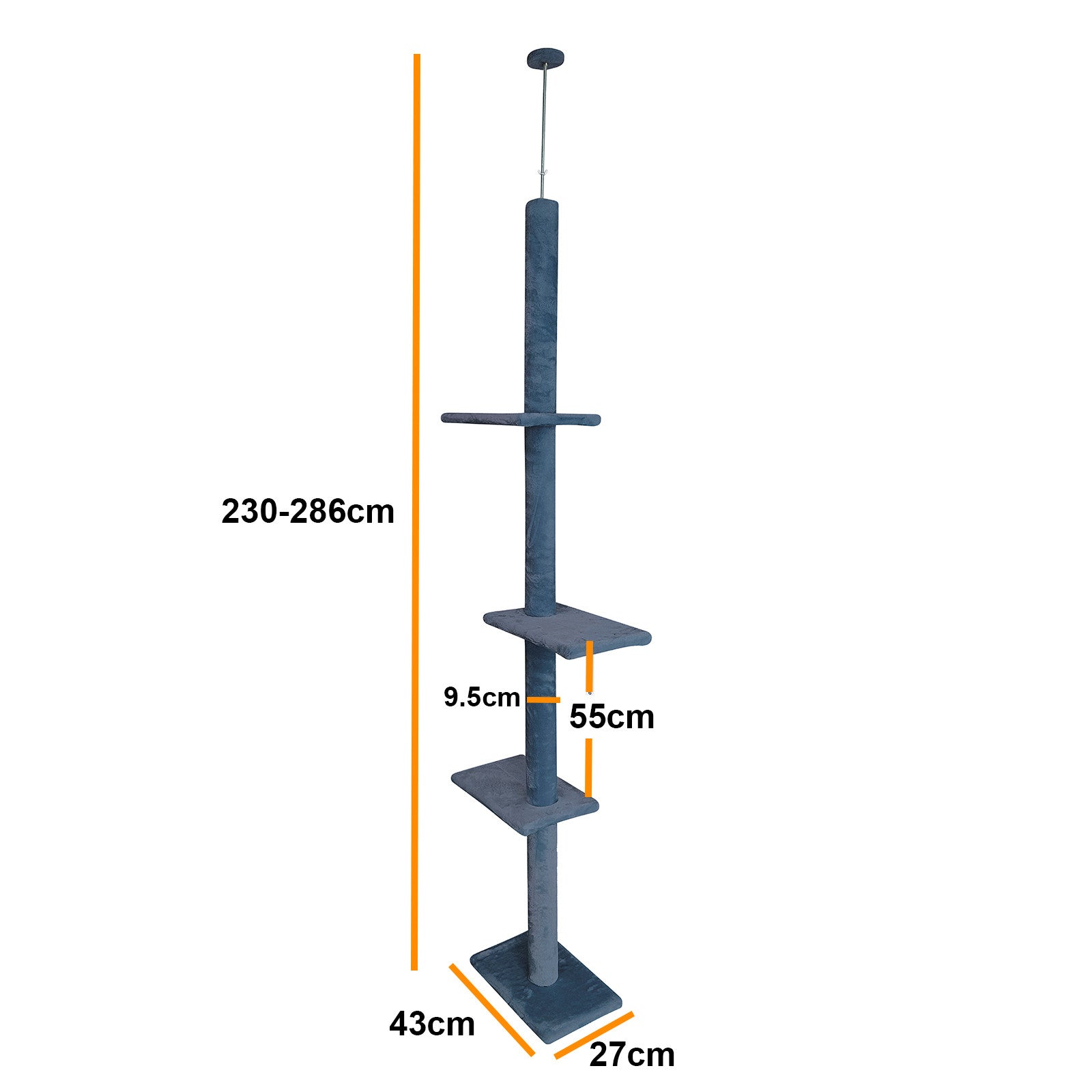 4Paws Cat Tree Scratching Post House Furniture Bed Luxury Plush Play 230cm - Grey