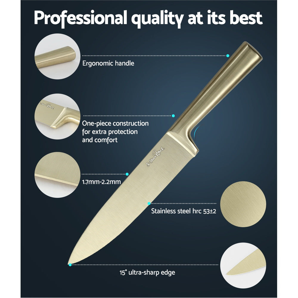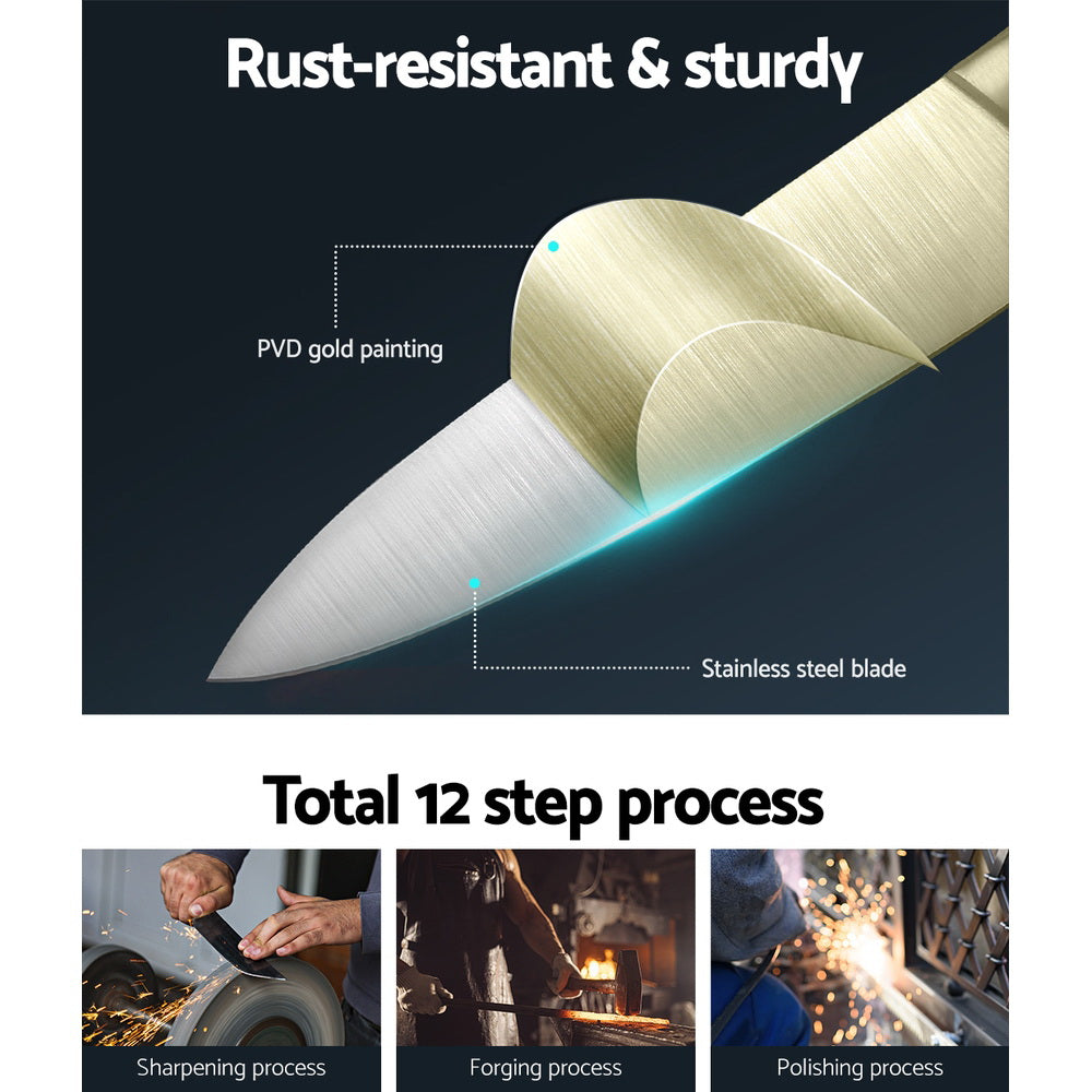 Do you love to cook? Our 6-Piece Kitchen Knife Set will keep your cooking skills sharp. The knife set comes with a chef knife, bread knife, carving knife, utility knife, paring knife and a wooden knife block to keep your collection organised and protected. Slice, dice, cut and gut, there’s a knife for every cooking situation. Each knife is made from quality stainless steel and is constructed from a single piece for extra comfort and protection. Unlike other basic kitchen knife sets, our knives feature a non-scratch, non-stick coating that is easy to clean and incredibly rust-resistant. It has a well-balanced hollow ergonomic handle making it easy to hold and use. The knives have a hardness rating (HRC) of 53±2, making them perfect for student chefs and home cooks on a budget. With its sleek modern design, the knife set is the perfect gift for a budding chef, first homeowner, or even for yourself. Spruce up your kitchen and elevate your cooking skills today with our comprehensive 6-Piece Knife Set.