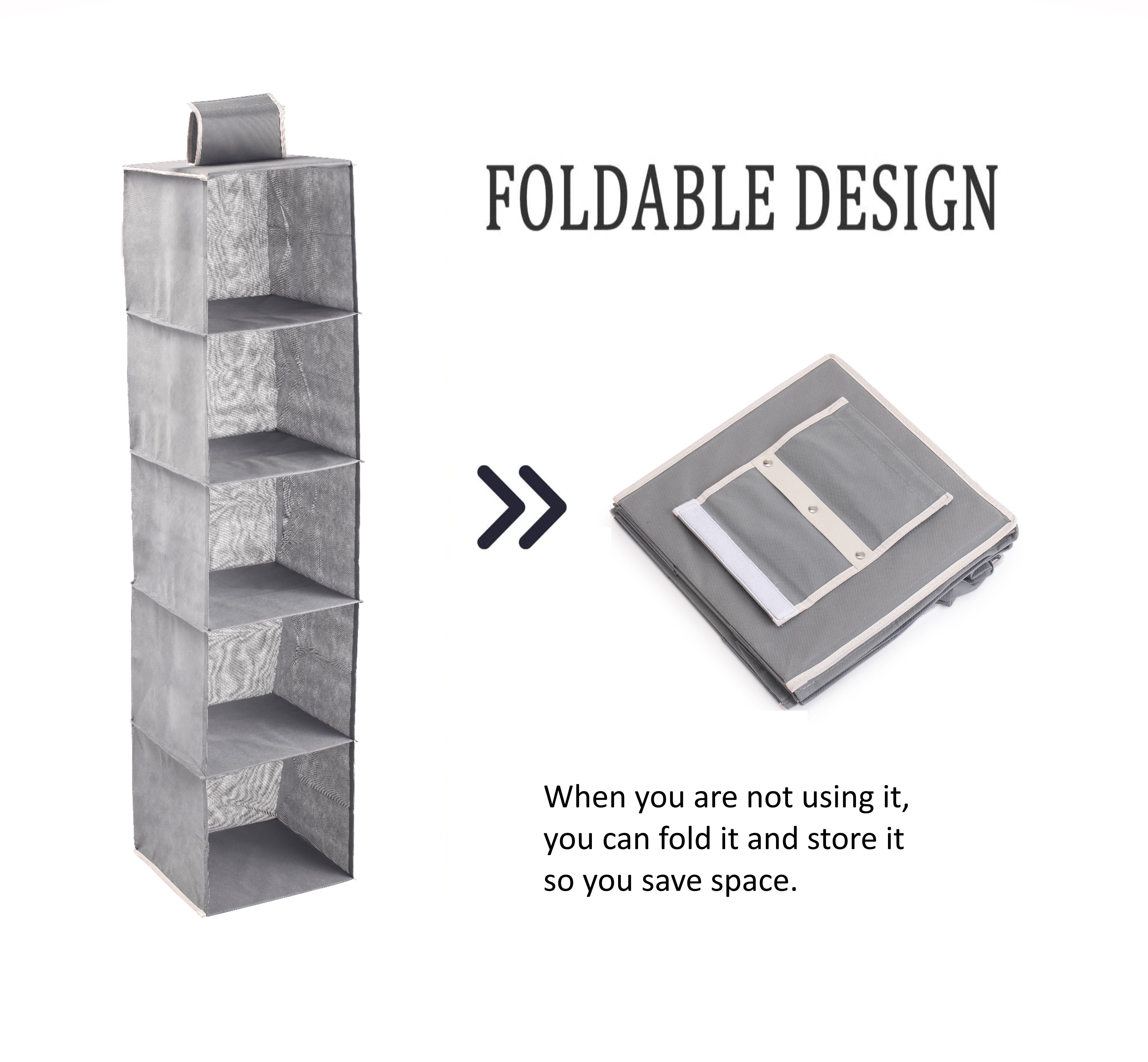 - VERSATILE USAGE: The heavy duty material of the 5 shelf organizer, is durable and strong enough to hold bulky sweaters, hats, and more accessories.