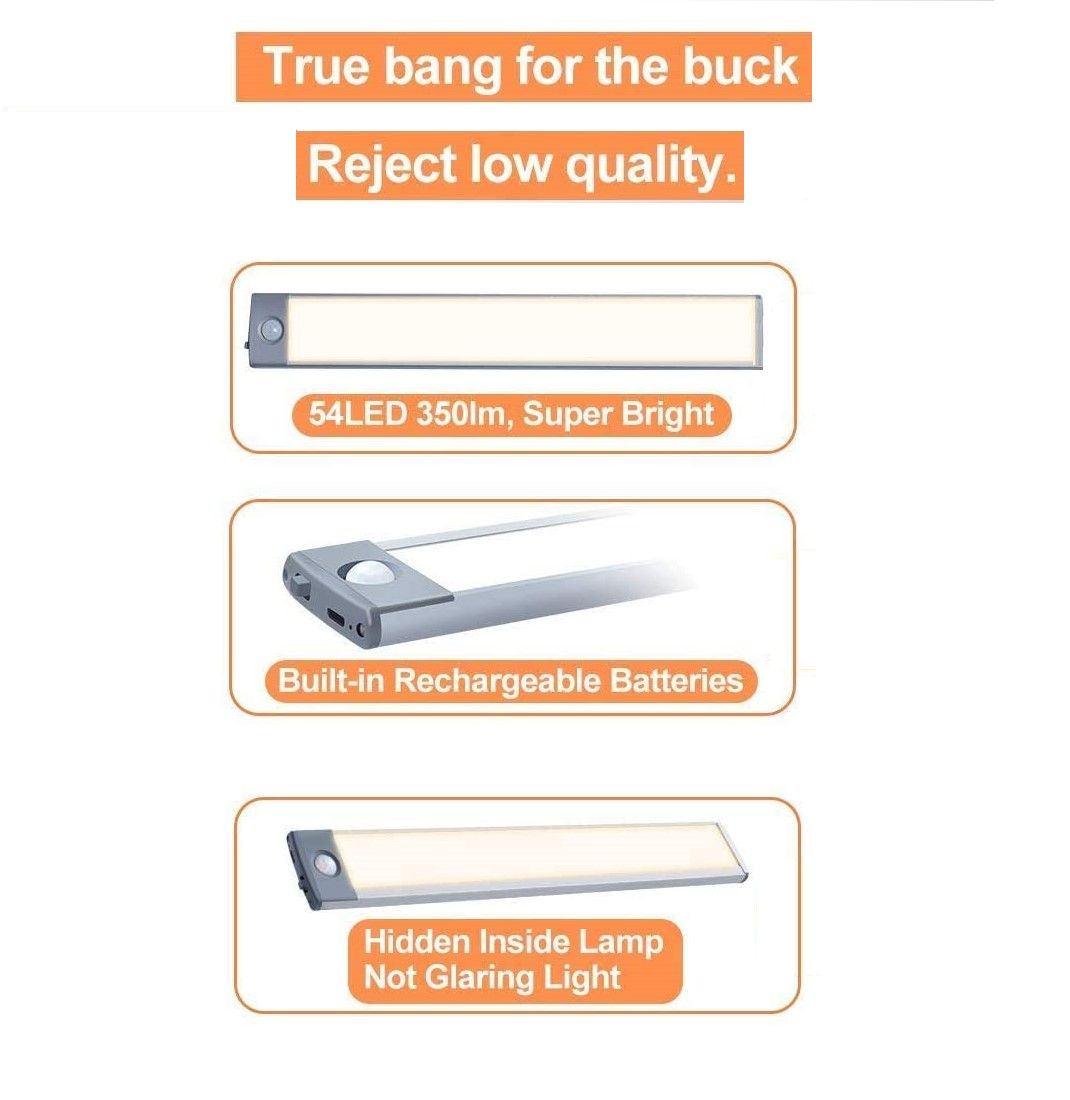 54 LED Rechargeable Under Cabinet Night Lighting for Kitchen and Bedroom (Sliver and Yellow Light)