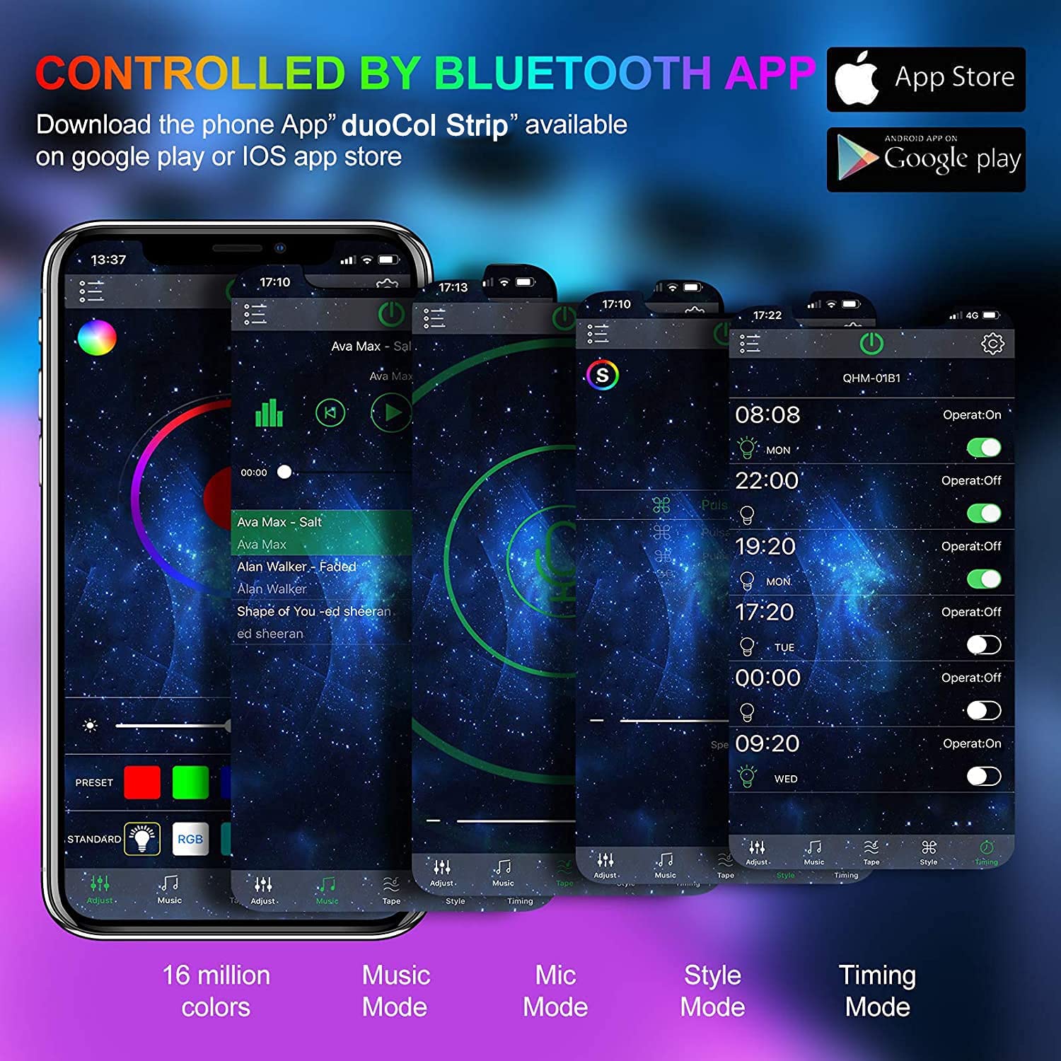 - Timing function: Led lights bedroom with the smart app, pre-setting the appropriate time and suitable color to make it turn on/off automatically, you wake up in romantic lighting every morning