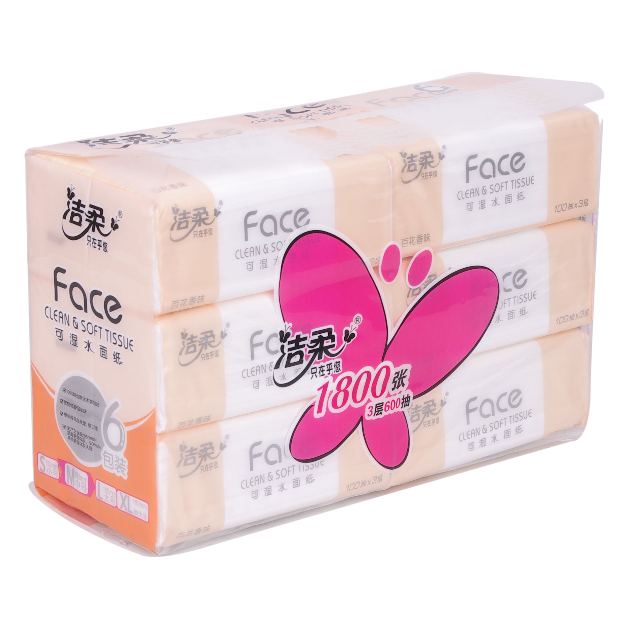 6 Pack 3-ply Soft Facial Tissue with Flower Fragrance 100 Sheets/Pack White