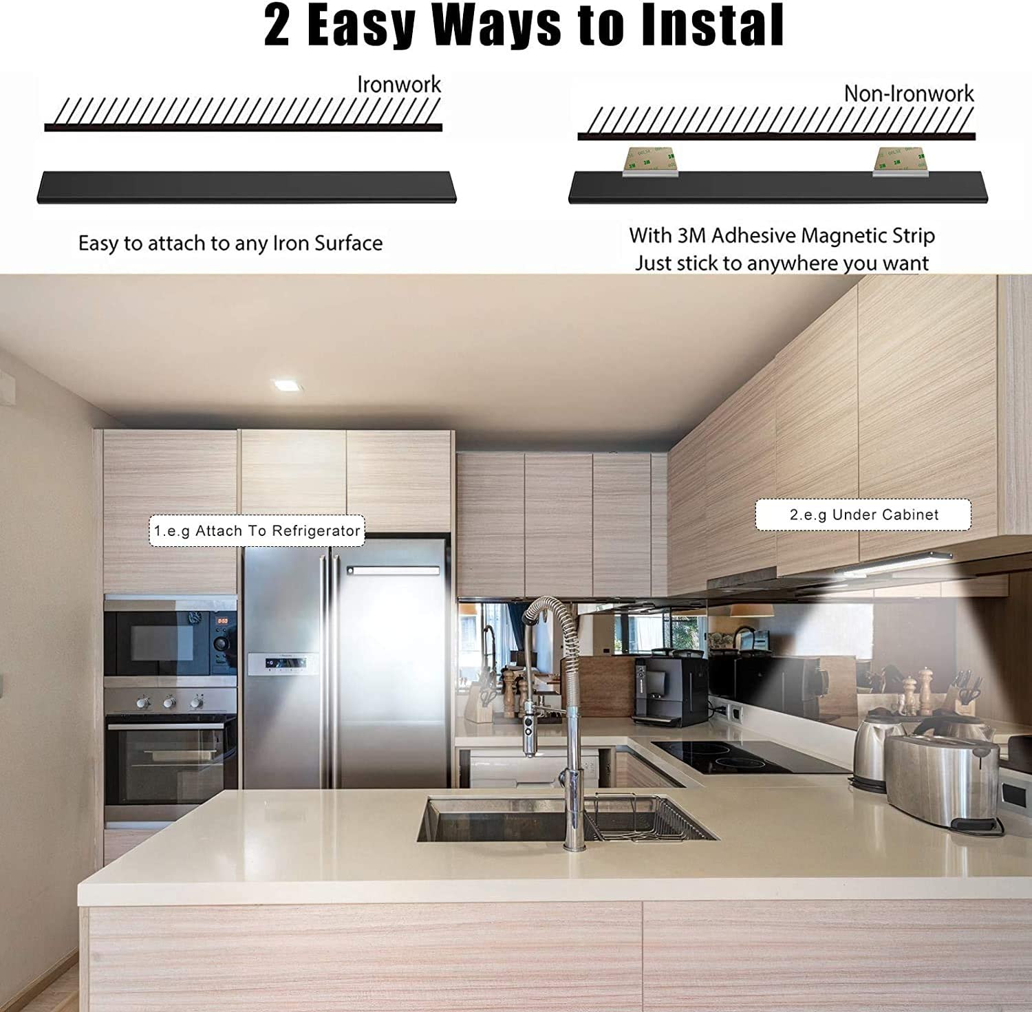 - Easy to Install : This wireless motion sensor night light can stick on any iron, or you can use the included adhesive tape to tape and iron sheet to stick on any non-iron article surface. When need charge or change place, you can the take closet light off anytime.