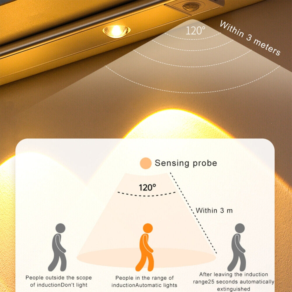 1. This smart LED human body sensor light, the lampshade is made of high-quality aluminum + ABS, with exquisite hill projection light effect, full of style and durability.