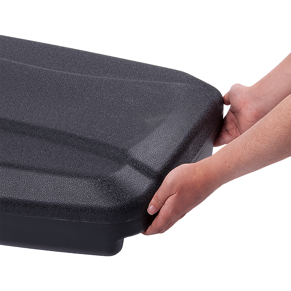 - Sturdy and durable; uses either sand or water in its base