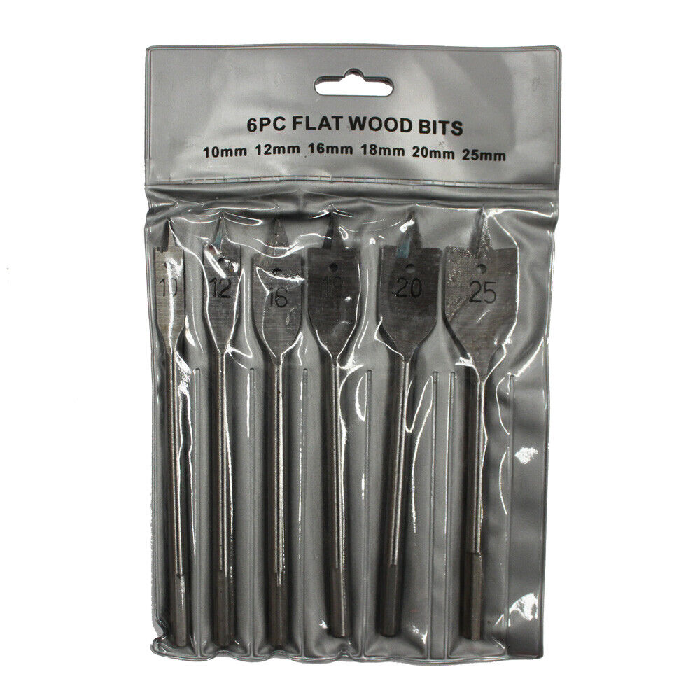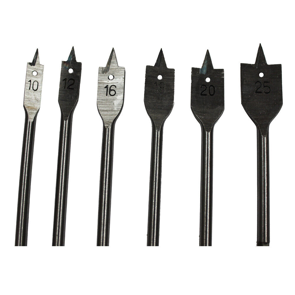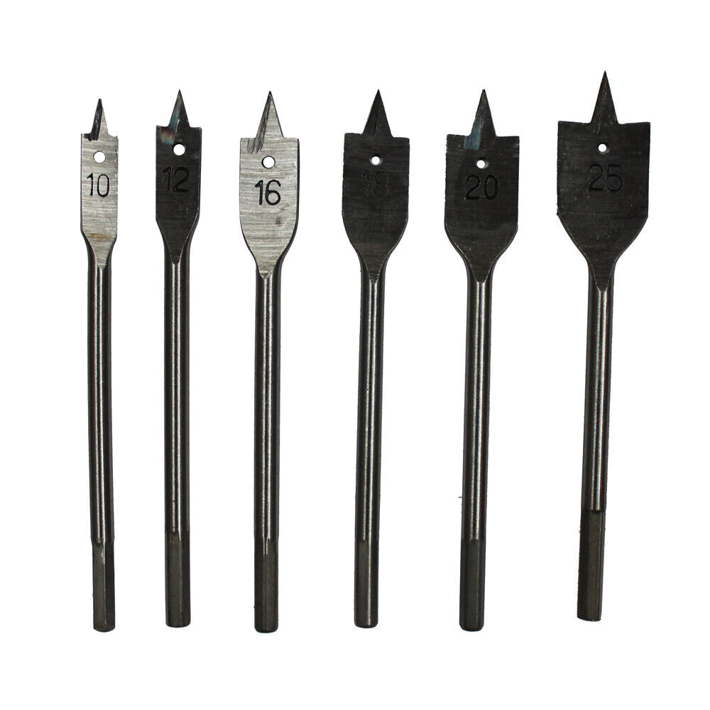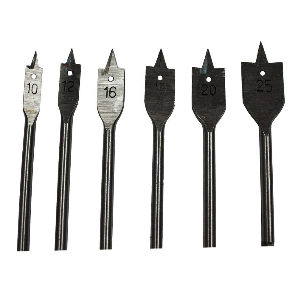 6PCS Wood Working Flat Drill Bit Set 10-25mm Hole Cutting Borer Quality