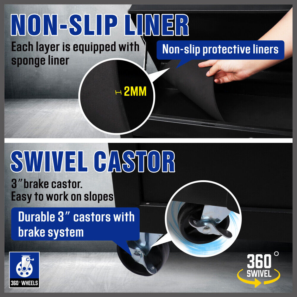 - Non-slip liner in each drawer to protect tools and prevent movement.