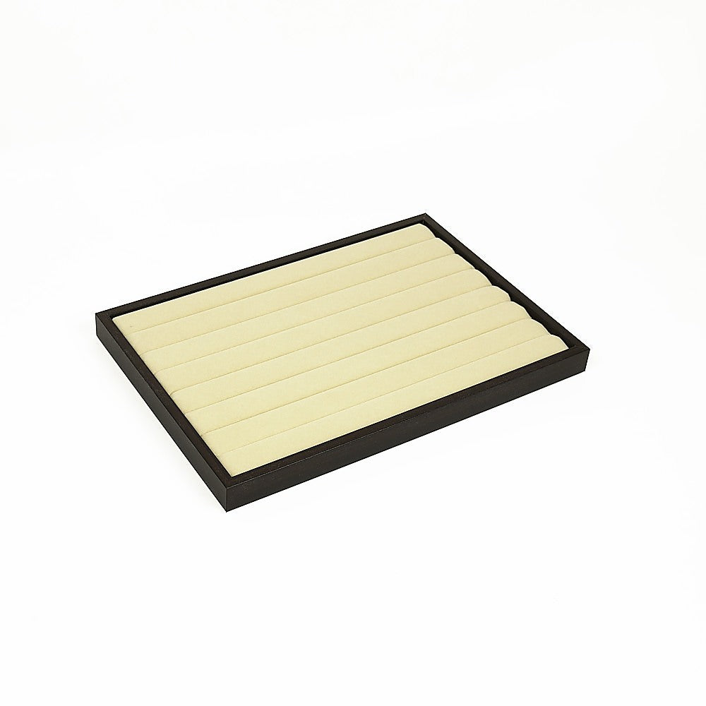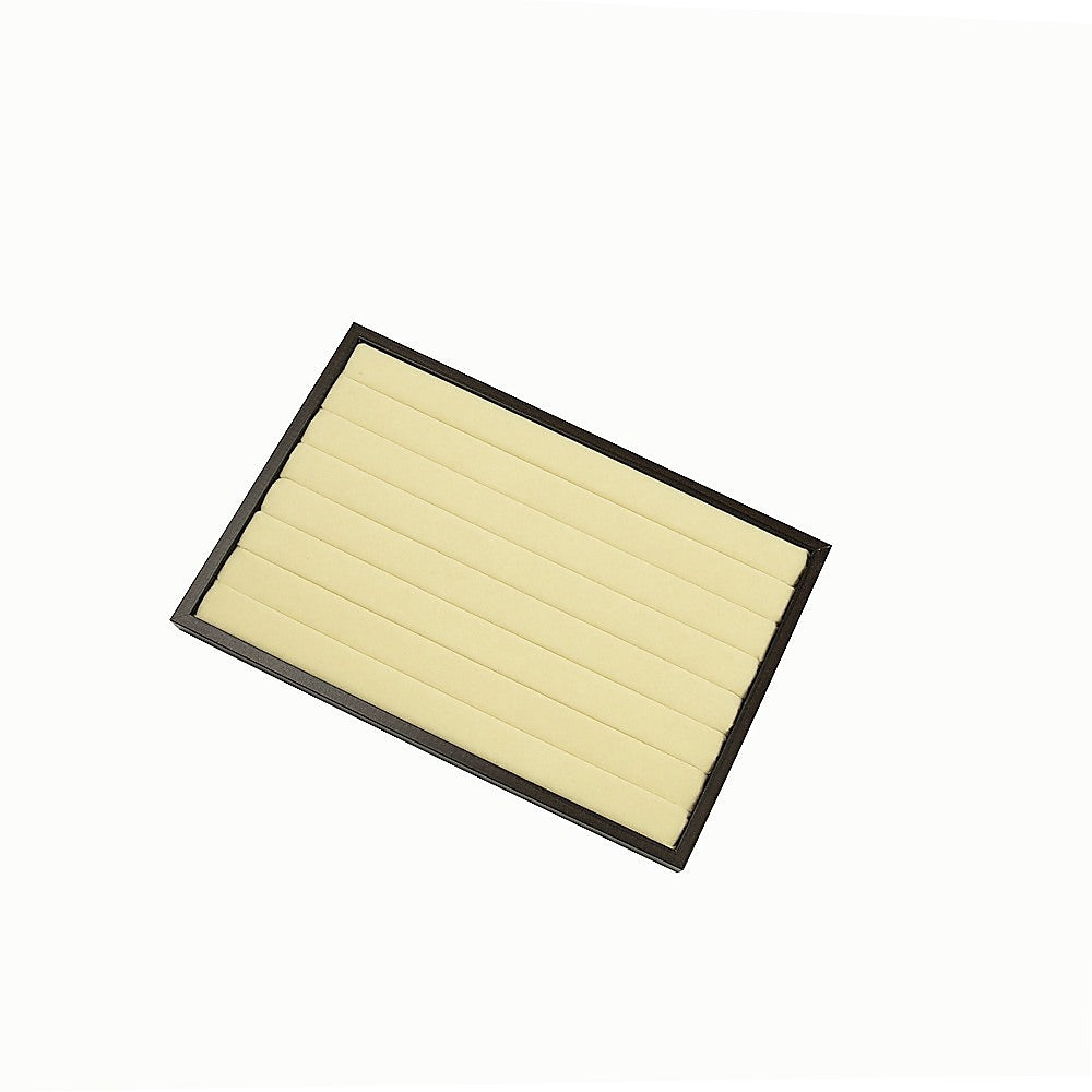 Each tray features seven velvet-covered slots that are spaced to securely hold rings, earrings and other small jewellery items in an organised manner. The pieces really stand out against the black backdrop, so it's easy to see the details of each piece. If you've got a larger jewellery collection, multiple trays can be stacked to provide space-saving storage.