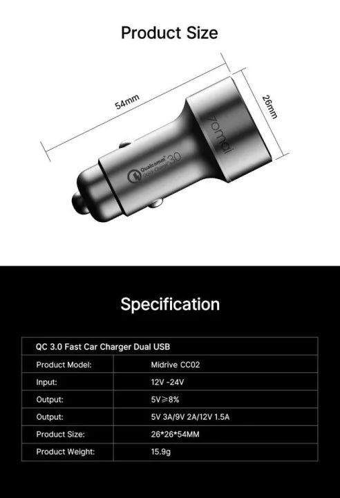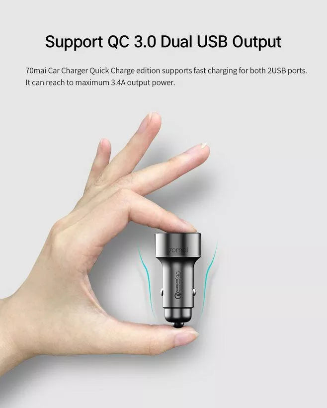 70Mai CC02 Dual USB Car Charger Metal QC 3.0 Fast Charging Adapter