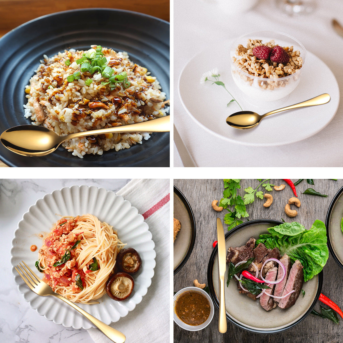 Each piece is 100% dishwasher safe but requires loading with forks and spoons facing up. Place knives separately with sharp ends down to prevent damage. For best results, dry by hand with a cloth to avoid discoloration and corrosion to the cutlery from extreme heat.