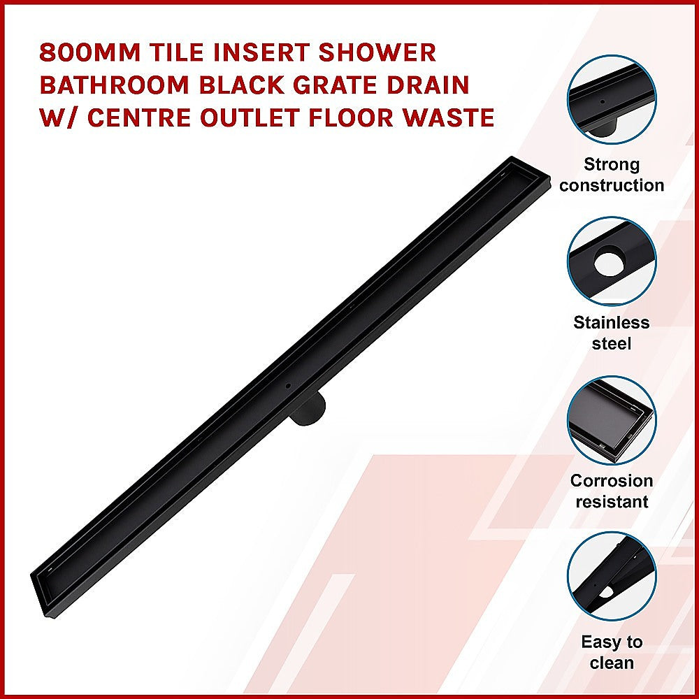 The practical yet eye-catching black shower grate features a frameless design that allows it to be seamlessly inserted into the shower's tiling configuration. The grate with its high quality 304 stainless steel construction provides durability and longevity as well as resistance to corrosion.