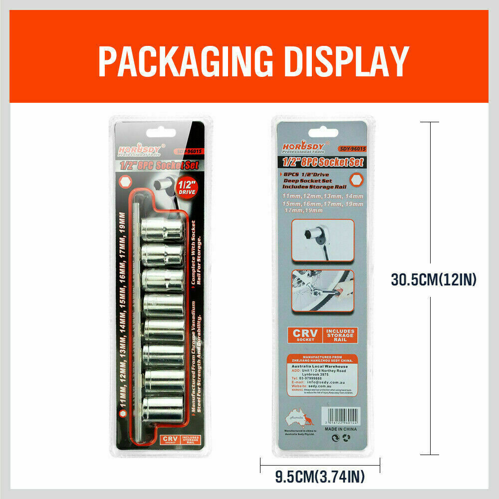Reviews 8Pc Metric Socket Set 1/2" Drive 11MM - 19MM For Wrench CRV Mechanic With Holder 0 out of 5 stars This product has no reviews yet Write a review Write a review