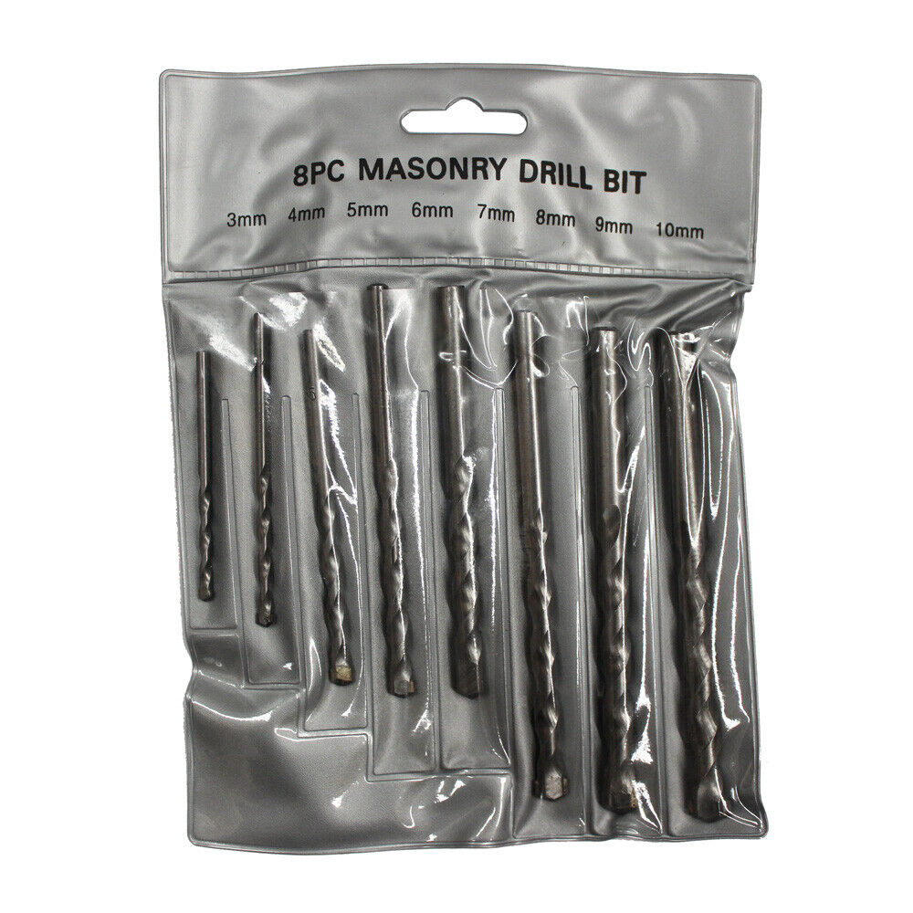 8pcs Masonry Drills Bit Set Cr Plated 3-10mm Concrete Carbide Tip Metric