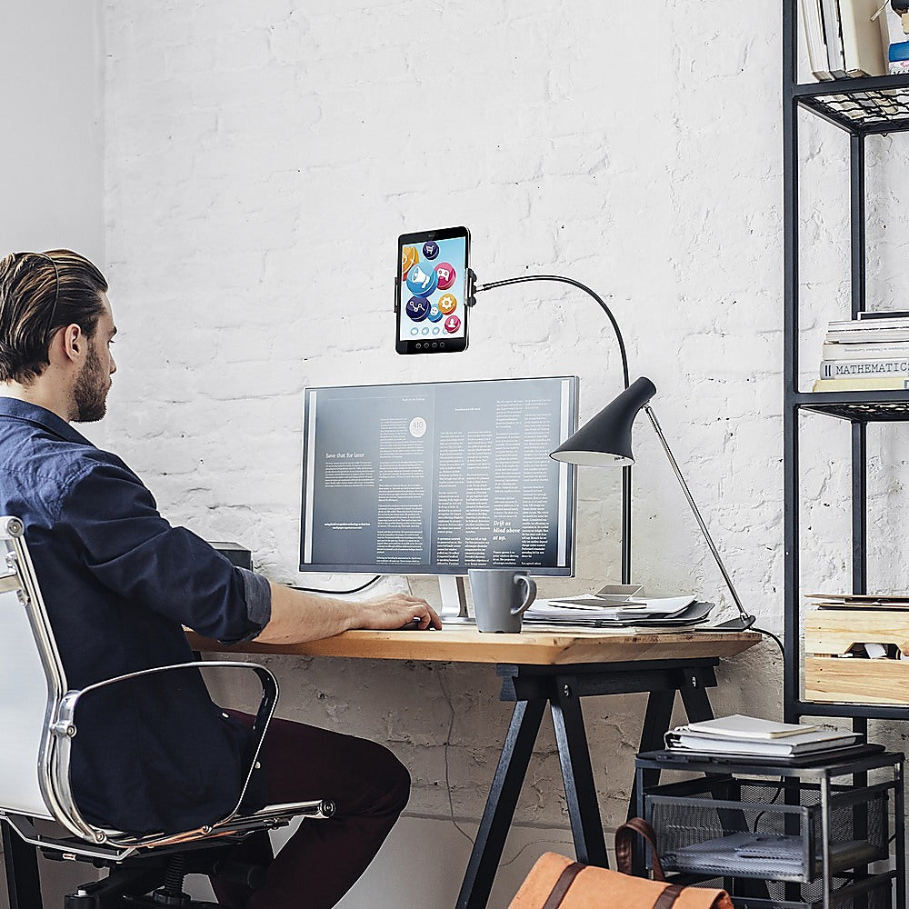 There are even more uses for this versatile stand. Use it to conduct Zoom calls while standing or to record music or other videos hands-free, or watch YouTube recipe videos while you follow the video chef's lead and recreate their gourmet dishes in your own kitchen. Adjust it at whatever angle or height feels comfortable to you – it's your choice. Get more use out of your mobile devices with this sturdy, convenient holder and stand. Order yours today!