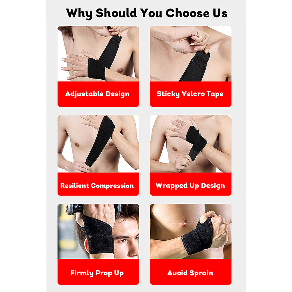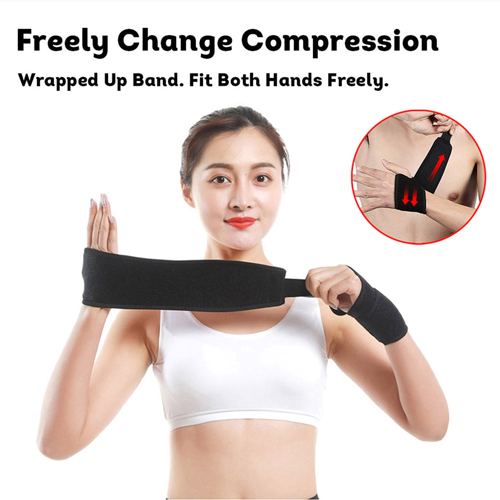 ADJUSTABLE wrist support wraps with comfortable thumb loop that prevents displacement. One size good for men and women, fits for both right and left hand from small to large.