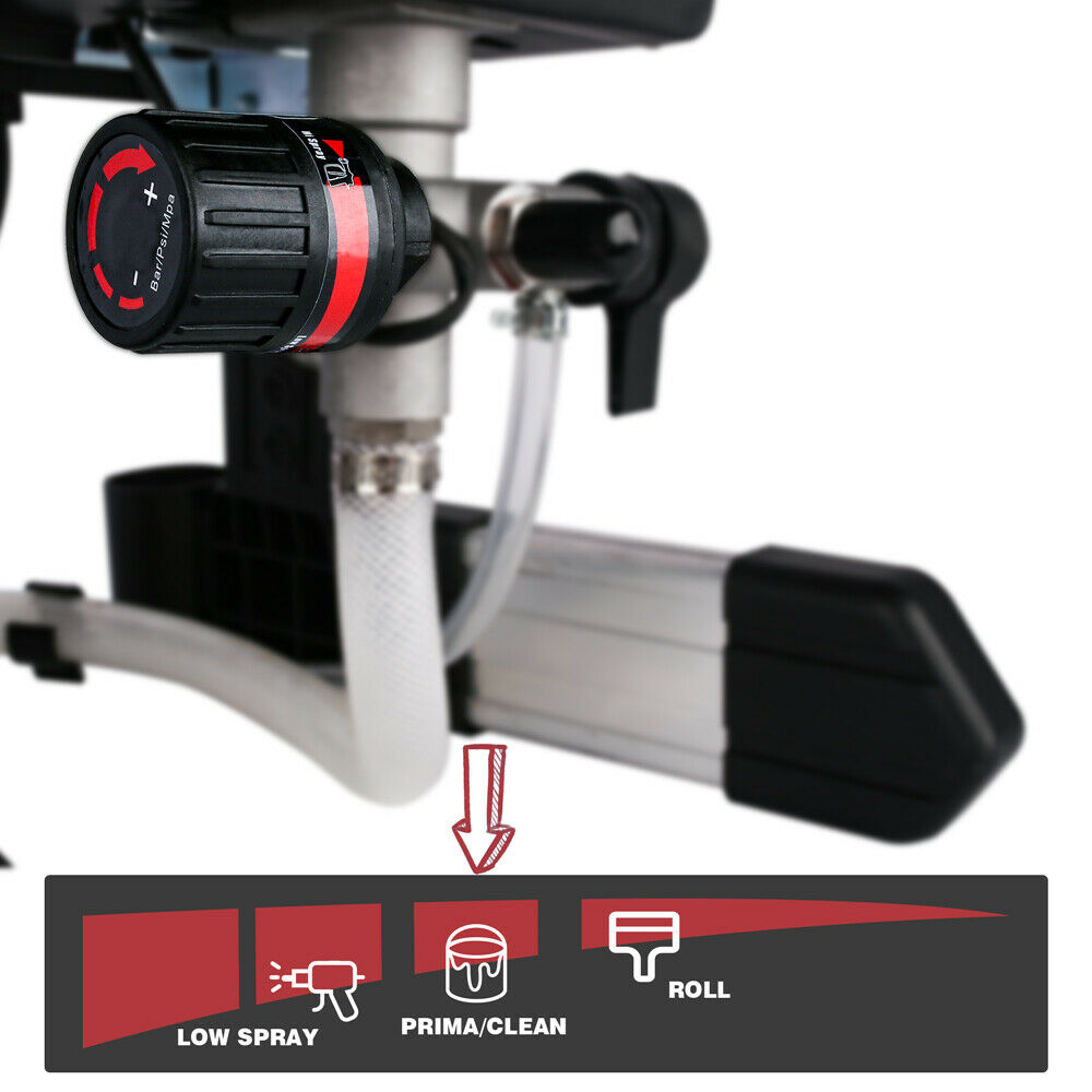 The sprayer allows for infinite pressure adjustment, depending on the knob symbol to achieve different spray patterns.This makes it the first choice when painting the exterior of a house, garage, shed or fence.