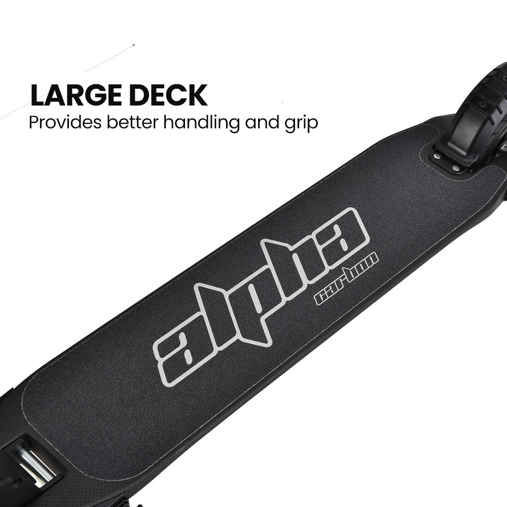 Introducing the ALPHA® Carbon™ Gen III electric scooter – a synergy of sleek design and advanced technology, and the highest quality components. Not only does the use of carbon fiber for the entire frame make a bold visual statement, it also ensures this incredibly light scooter has serious torsional strength for optimal performance.