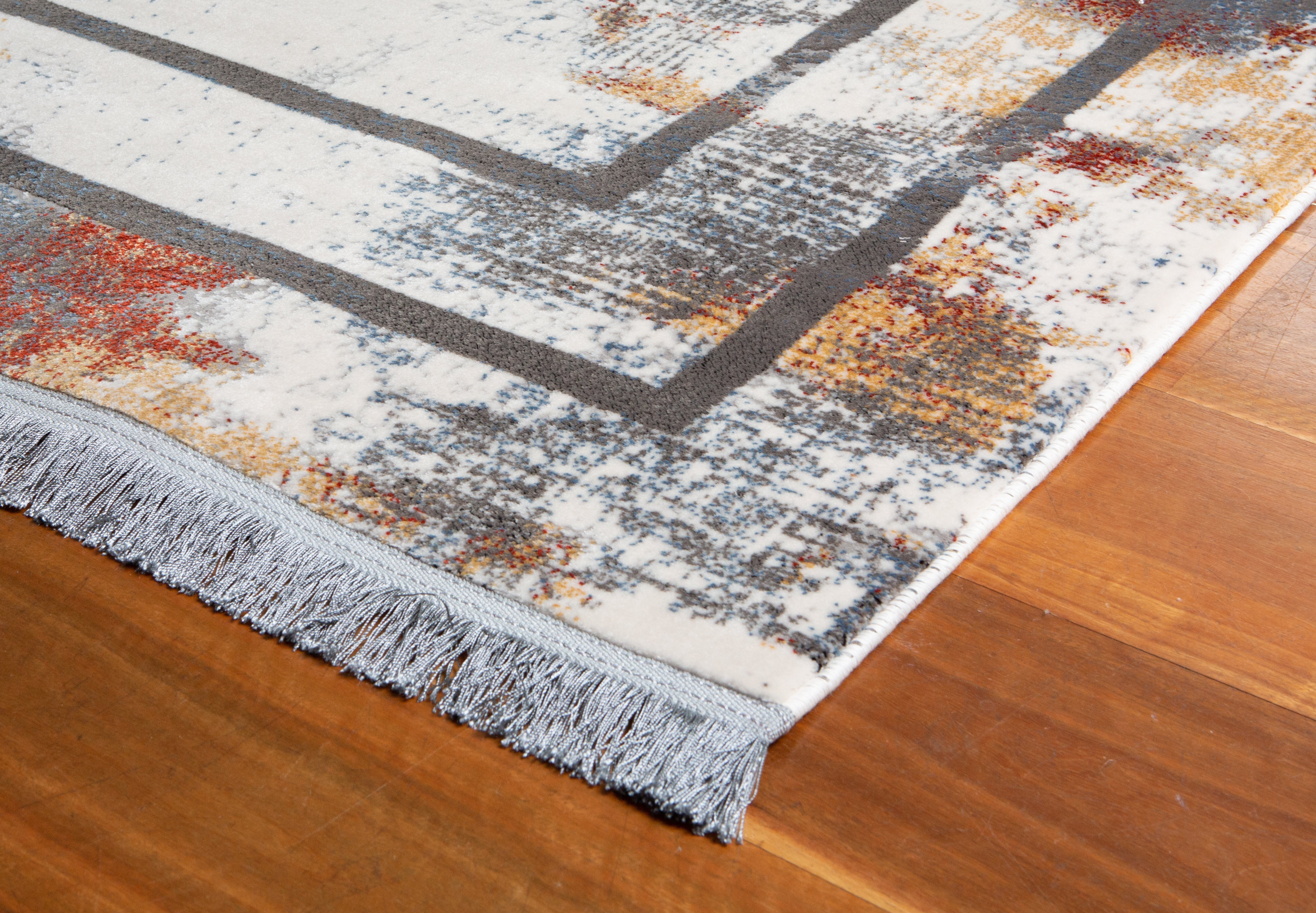 A classy abstract rug featuring an artistic contrast between warm and cold neutral tones, from bold white and black to softer cream and red browns. This makes it versatile to fit right into any home environment and add an element of modern charm to the living space. Despite being machine-made, Ambar retains an authentic hand-made look.