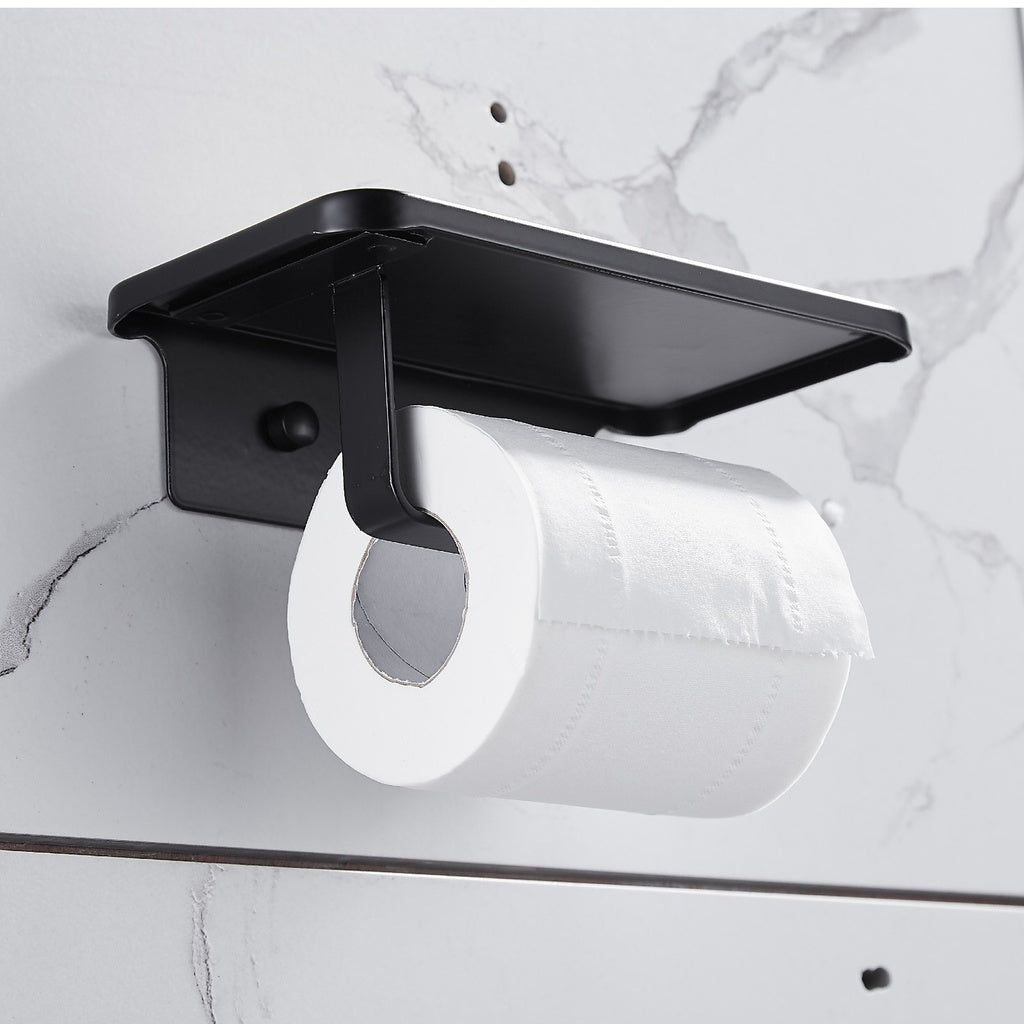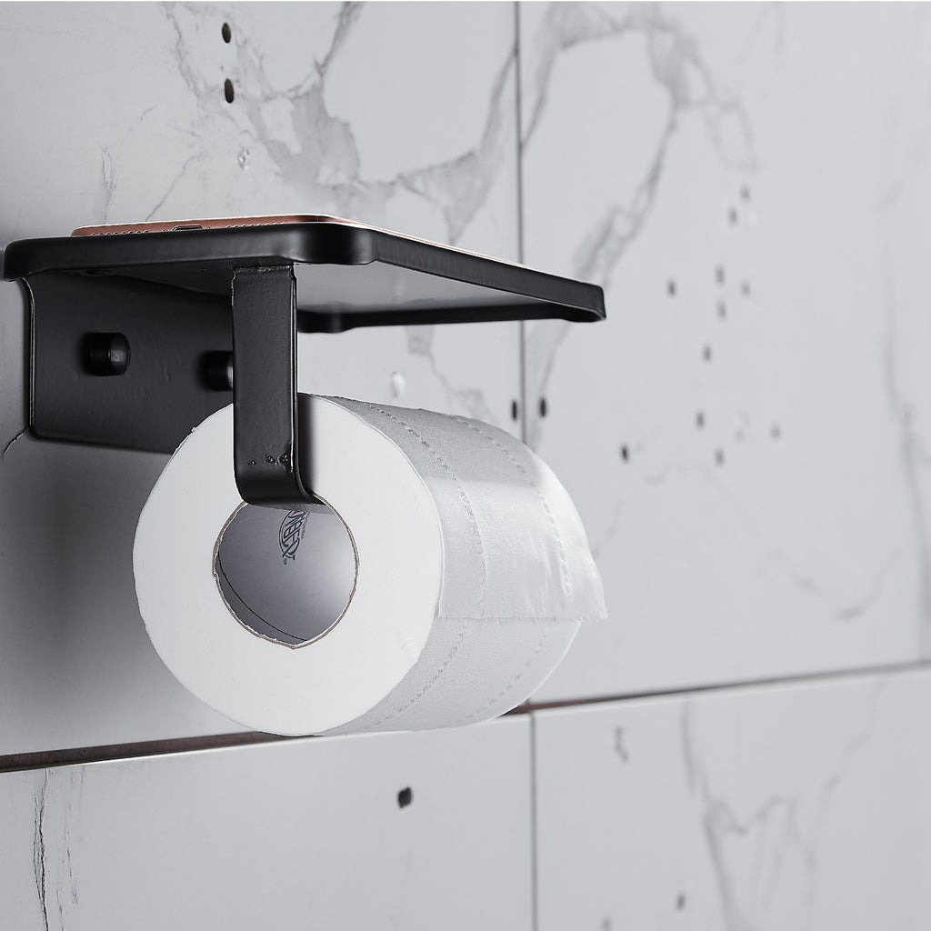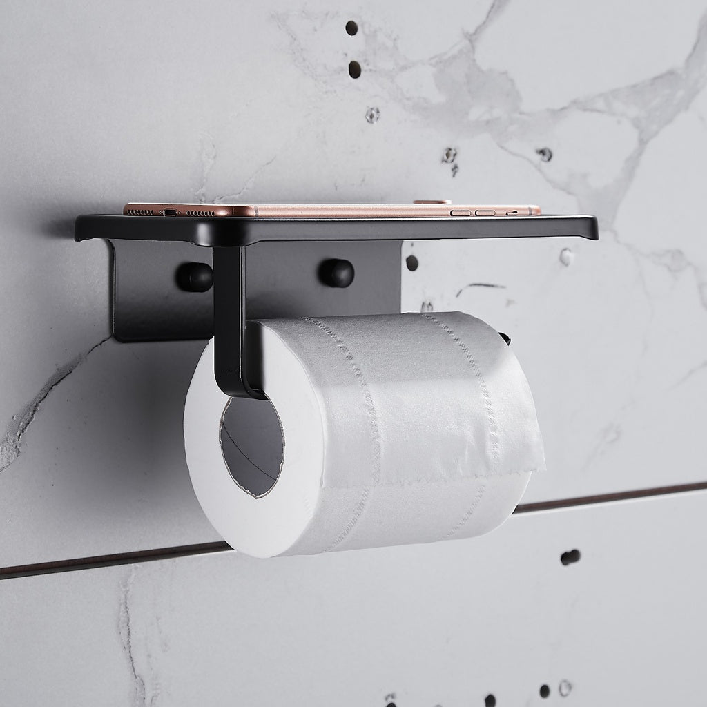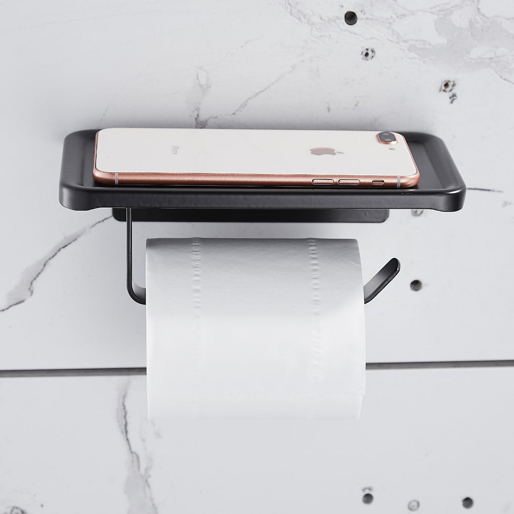 Amirra Wall-Mounted Toilet Paper Roll Holder Hook with Phone Shelf Black