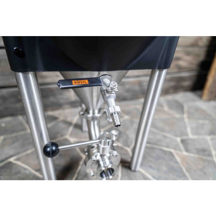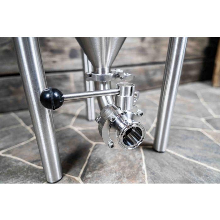 Pro-style welded 1.5” tri-clamp bottom dump makes dumping sediment and harvesting yeast a snap