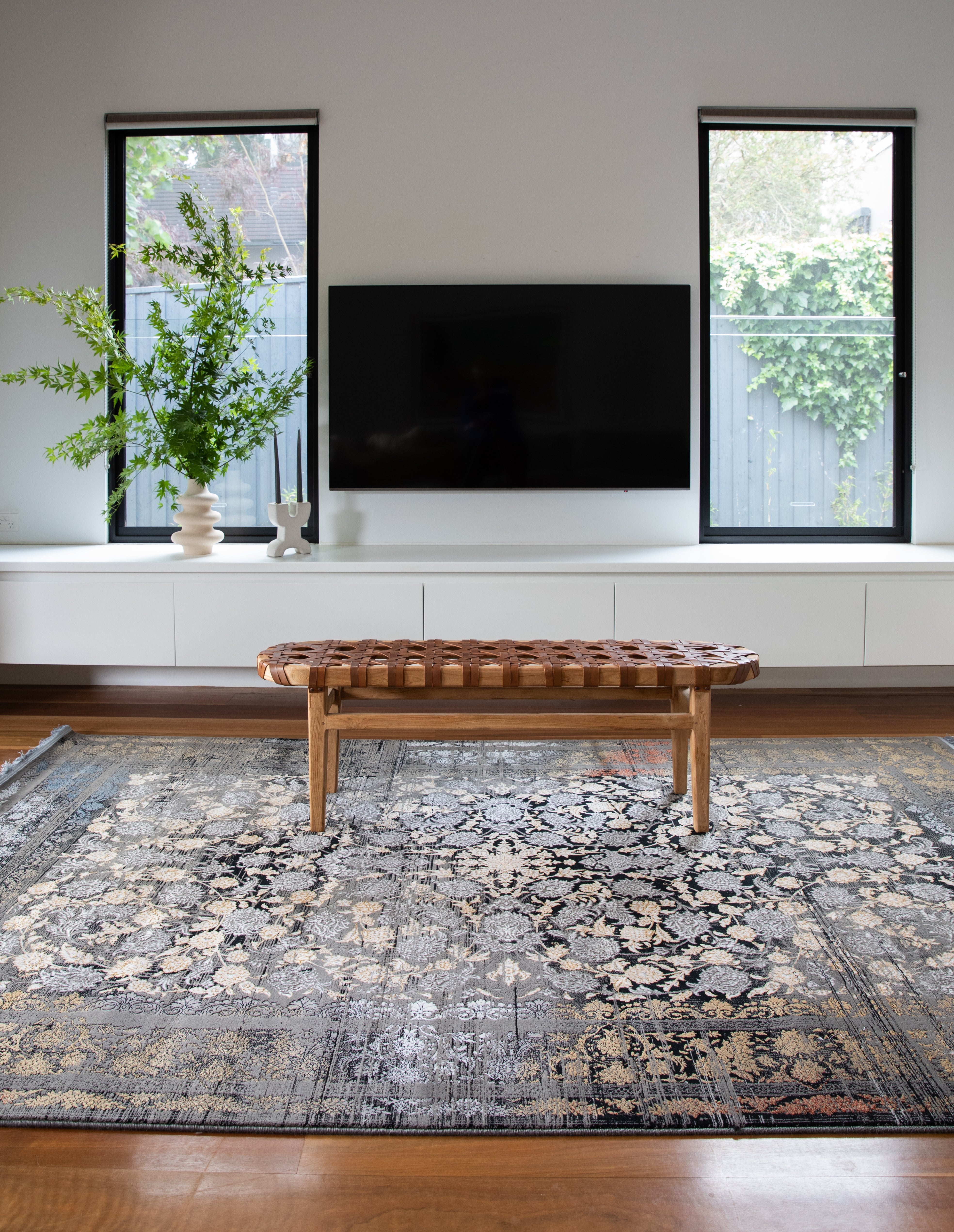 A most fascinating feature of this collection of rugs, Aphrodite included, is the inherent two-way colour variation that the material displays. The duality in perceived colour tones from opposite sides of the rug makes for an even greater experience, giving you two filters of the design to enjoy.