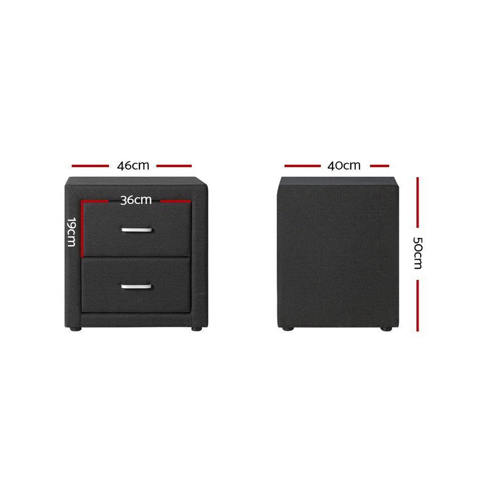 Simply designed with elegant linen fabric, our Artiss Moda Bedside table is the perfect furniture to bring a modern style to your bedroom. The practical design consists of two large drawers with plenty of space to store your personal accessories and knick knacks. It features MDF panels upholstered in smooth faux linen fabric with anti-rust coated metal draw runners and contemporary aluminium handles. Too good to be used only in the bedroom? Well, you can also use the bedside table as a side table with drawers to complement your contemporary home décor.