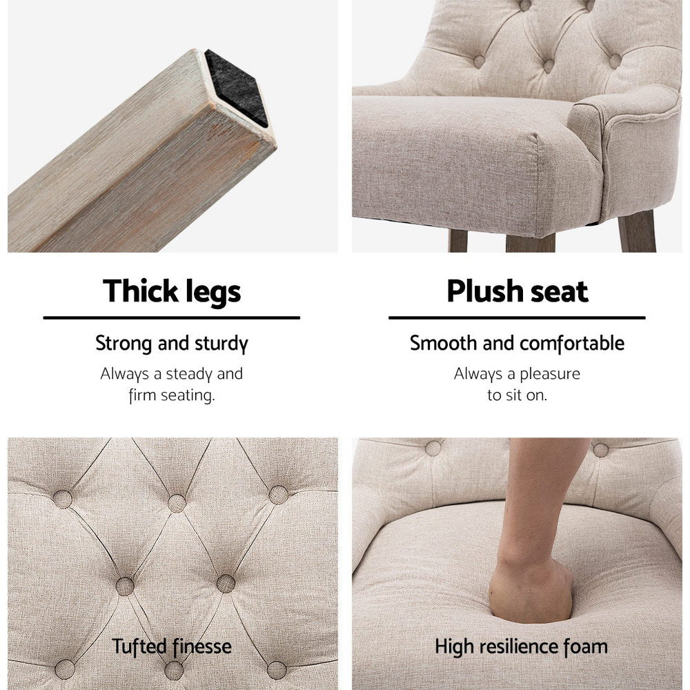Transform your home with French Provincial charm with our timeless Cayes Dining Chair. Oozing myriads of class and sophistication, the Cayes Dining Chair is upholstered in quality amber taupe linen over deep 13cm high resilience foam and set over a rubber wood frame.