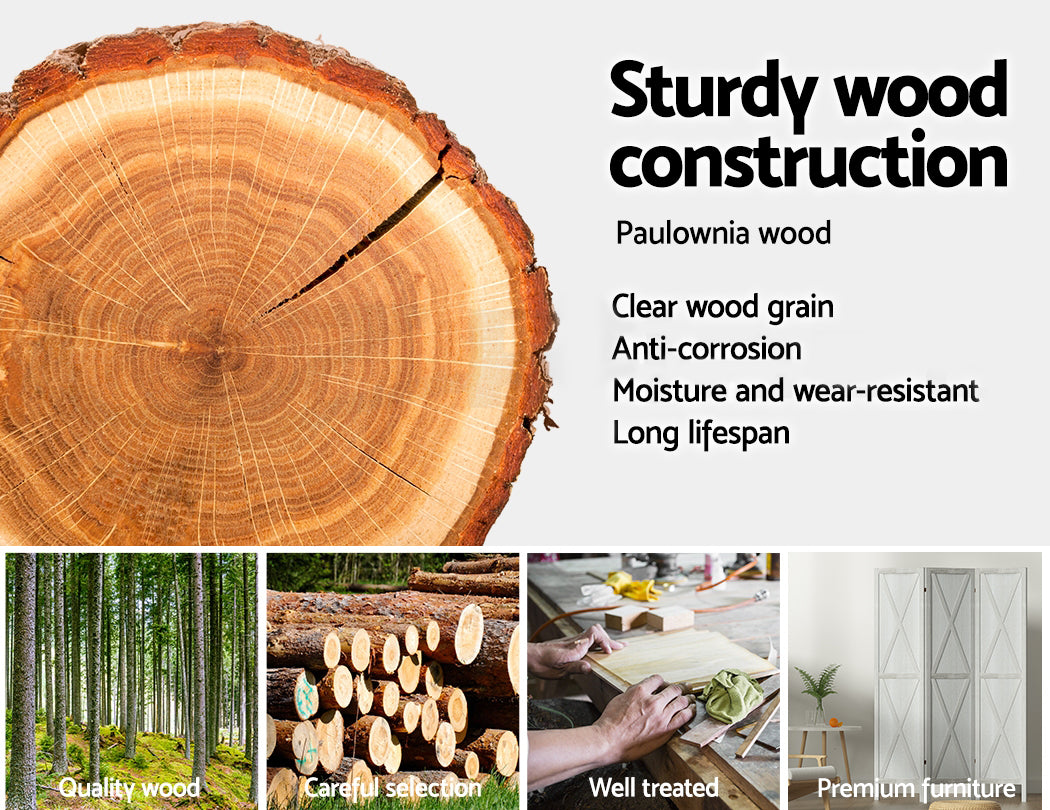 Need some privacy? Or want to make more practical use of space in your home? With our Artiss room dividers, you can create private pockets and zones or divide a large room into separate areas in minutes. It creates an illusion of different rooms without the need to add a solid wall. You can choose from our 3, 4, 6, or 8-panel room dividers in brown and white tones. They feature solid paulownia wood construction, which ensures longlasting use and ultimate durability. Our room dividers come with eco-friendly, non-toxic, and water-based paint that offers good resistance against cracks, fading, water, and corrosion. Additionally, their lightweight and portable design makes it easy to move from one room to another effortlessly. The panels of our room divider can also be folded, and the two-way metal hinges ensure sturdiness and greater stability. You can even assemble the panels easily. Purchase our room dividers and create a private area wherever you like.