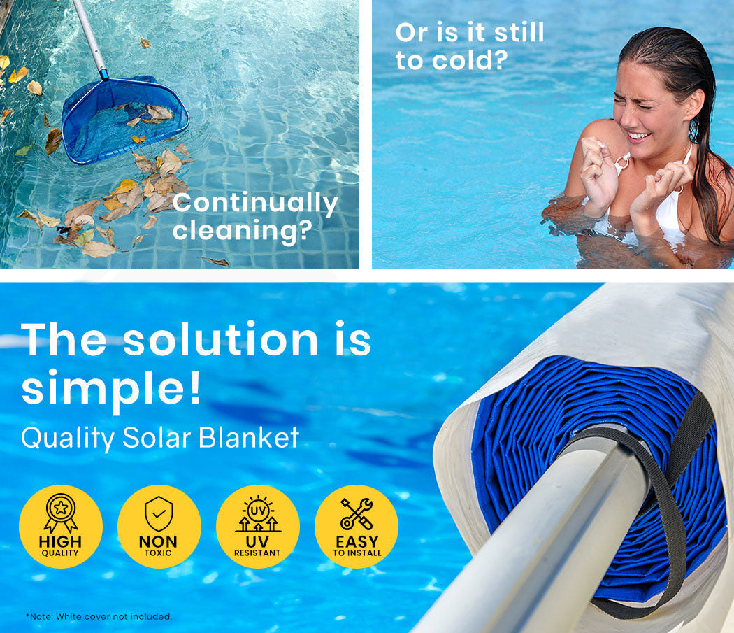 The innovative split blue and silver isothermal design fulfils unique benefits for your pool. While the sun is shining, the translucent blue rippled surface allows for greater heat to easily pass through, magnified by the bubbles to naturally heat the water. The silver underside then acts to trap the heat underneath and retain the pool's warmth for longer periods of time, which means swimming seasons extend further into the year.