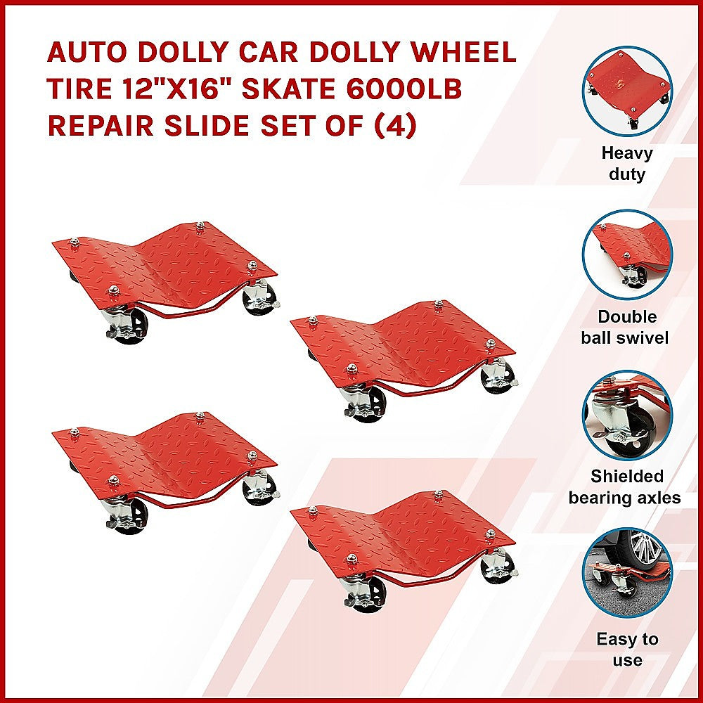 - Package includes: Four heavy-duty vehicle dollies (equipped with four dual-bearing swivel casters, two with brakes)