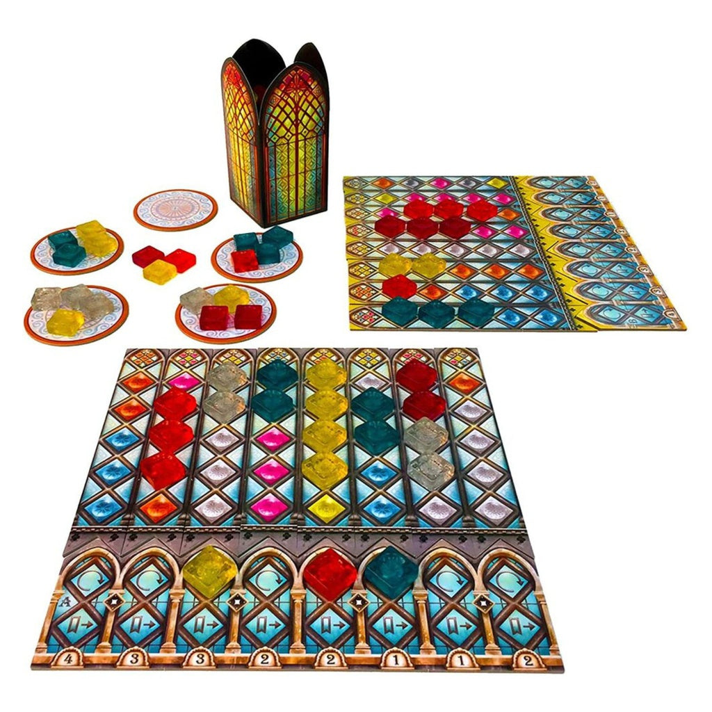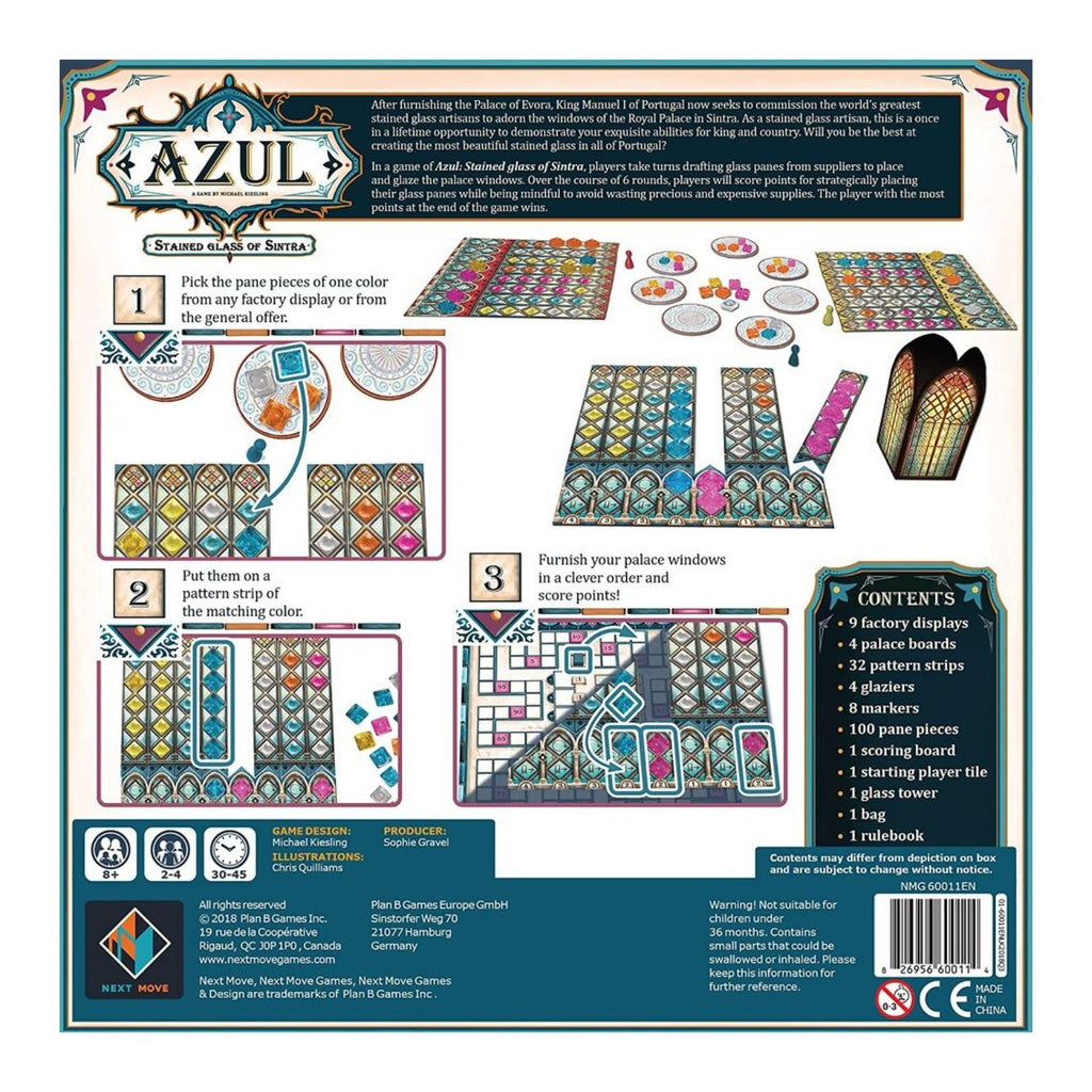 Created by Michael Kiesling - the creator of Azul (Winner of Spiel des Jahres 2018), Azul: Stained Glass of Sintra challenges players to carefully select glass panes to complete their windows while being careful not to damage or waste supplies in the process. The window panels are double-sided, providing players with a dynamic player board that affords nearly infinite variability!